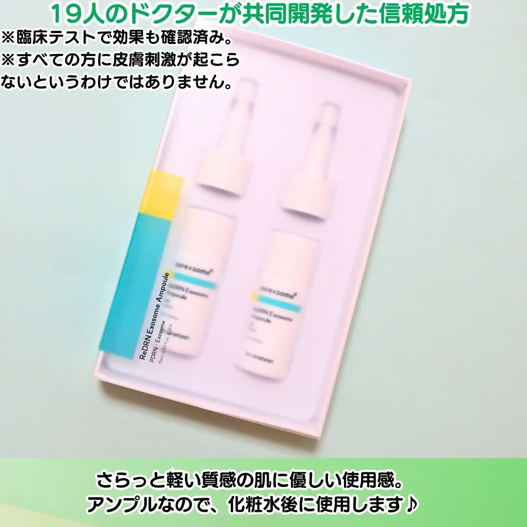 #PR Dr.nineteen@dr.nineteen_jp様▫️レディアールエヌエクソソームアンプル19人のドクターが手がけたダーマコスメ✨コラーゲン生成力に優れた進化系「BIOMEPDRN」を高濃度で配合緑色でなめらかなテクスチャー伸びが...