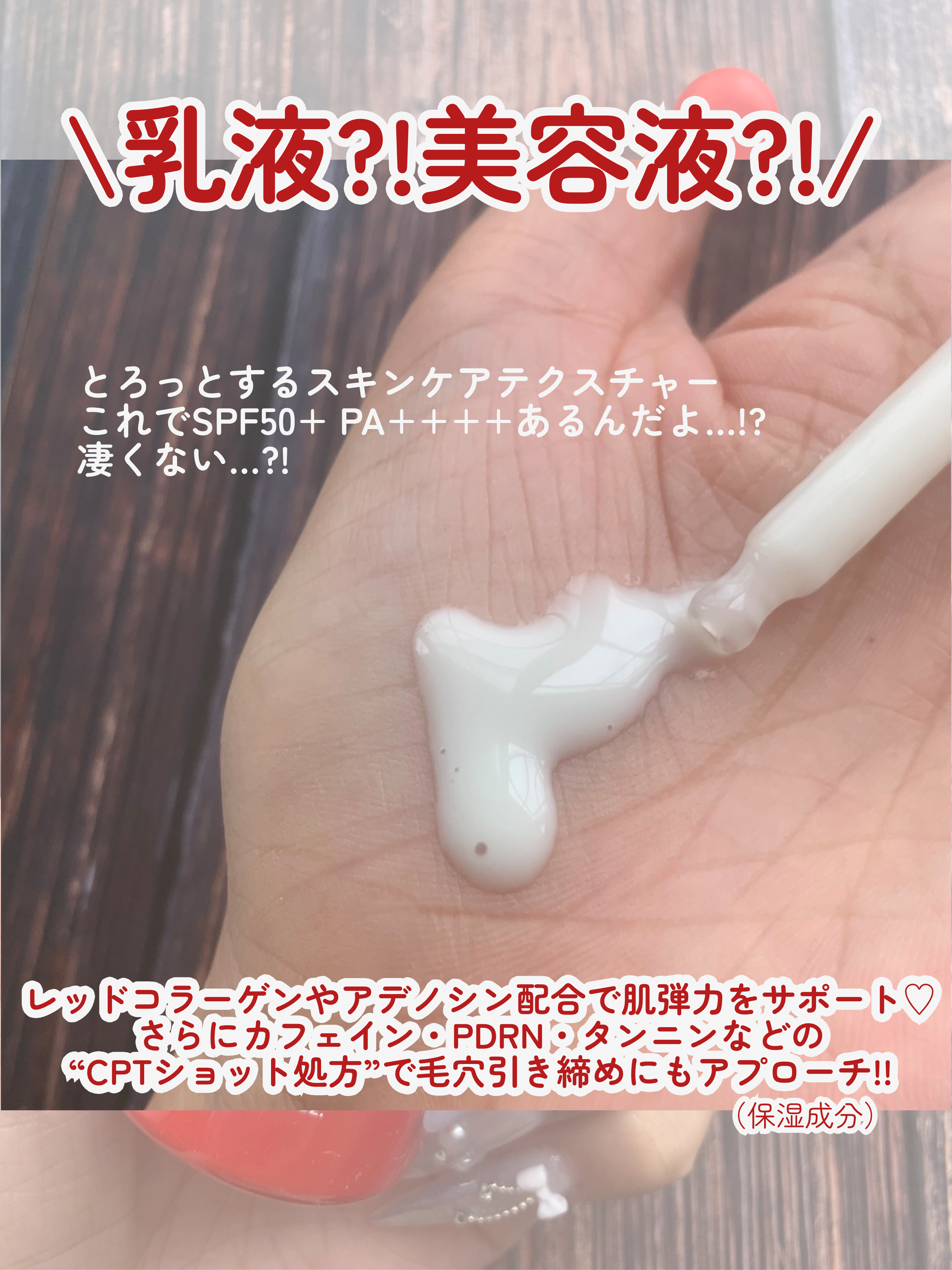 - POINT.1 日焼け止め特有の不快感を軽減 「日焼け止め=重たい」を覆す快適な使用感!みずみずしい乳液のようなテクスチャーで、肌にすーっとなじみ、ベタつき知らずの仕上がり。さらに、SPF50+/PA++++の最高レベルの紫外線ブロック力で、日中の肌をしっかり守ってくれる商品です。 POINT.2 紫外線による毛穴トラブルをケア 紫外線は、肌の弾力を低下させ皮脂分泌を促進し、毛穴を広げる原因に。紫外線でゆるむ毛穴や皮脂などの悩みに、話題の「PDRN」と「アデノシン」がWアプローチし、なめらか肌へと導きます。 ※ 2025年07月11日(金) 18時から、楽天市場にて予約発売開始!※