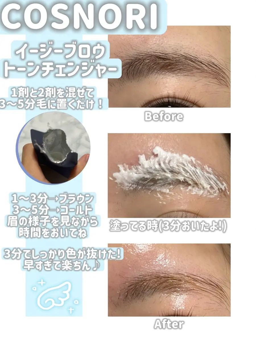\\COSNORI//▫️イージーブロウトーンチェンジャー(眉毛ブリーチ剤)コスノリ独自のペプチド特許成分配合でダメージを最小限に❣️自然なこげ茶からブロンドカラーまで理想にぴったりなカラーにトーンチェンジ🤎眉毛の脱色が簡単に!短時間で色が抜...