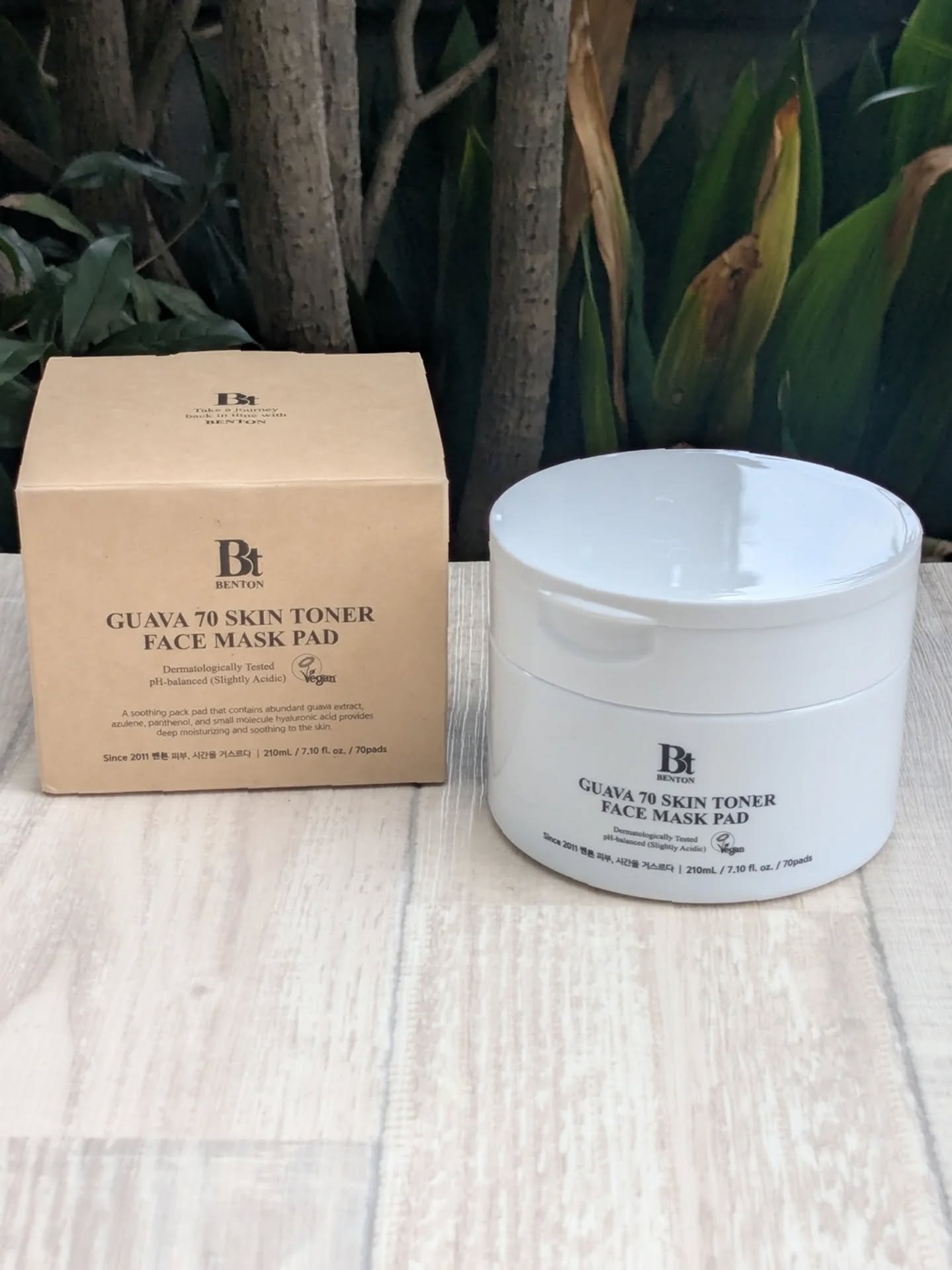 Bentonグアバ70スキントナーパッドソウル・ガンナムメイクサロン愛用のトナーパッド・グアバの肌荒れを防ぐ作用・ビタミンC※1がレモンの5倍季節や環境の変化で敏感になった肌に抗酸化×角質ケアのトリプルケアができちゃう優秀パッド✨️70枚入と...