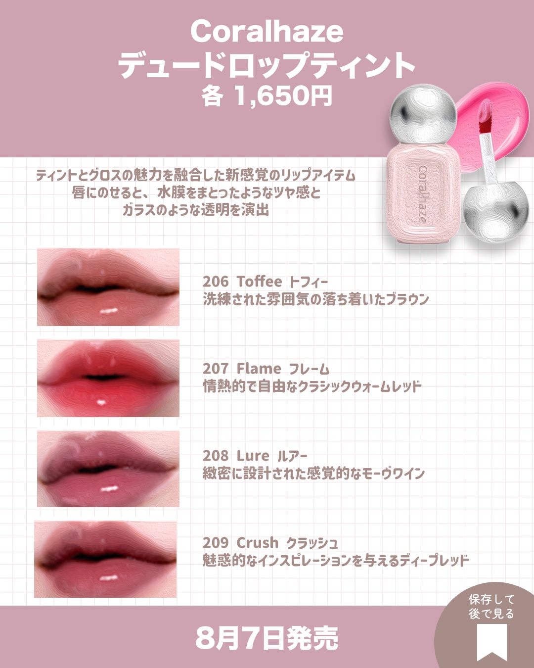 Coralhaze デュー ドロップ ティント | 1,650円 |