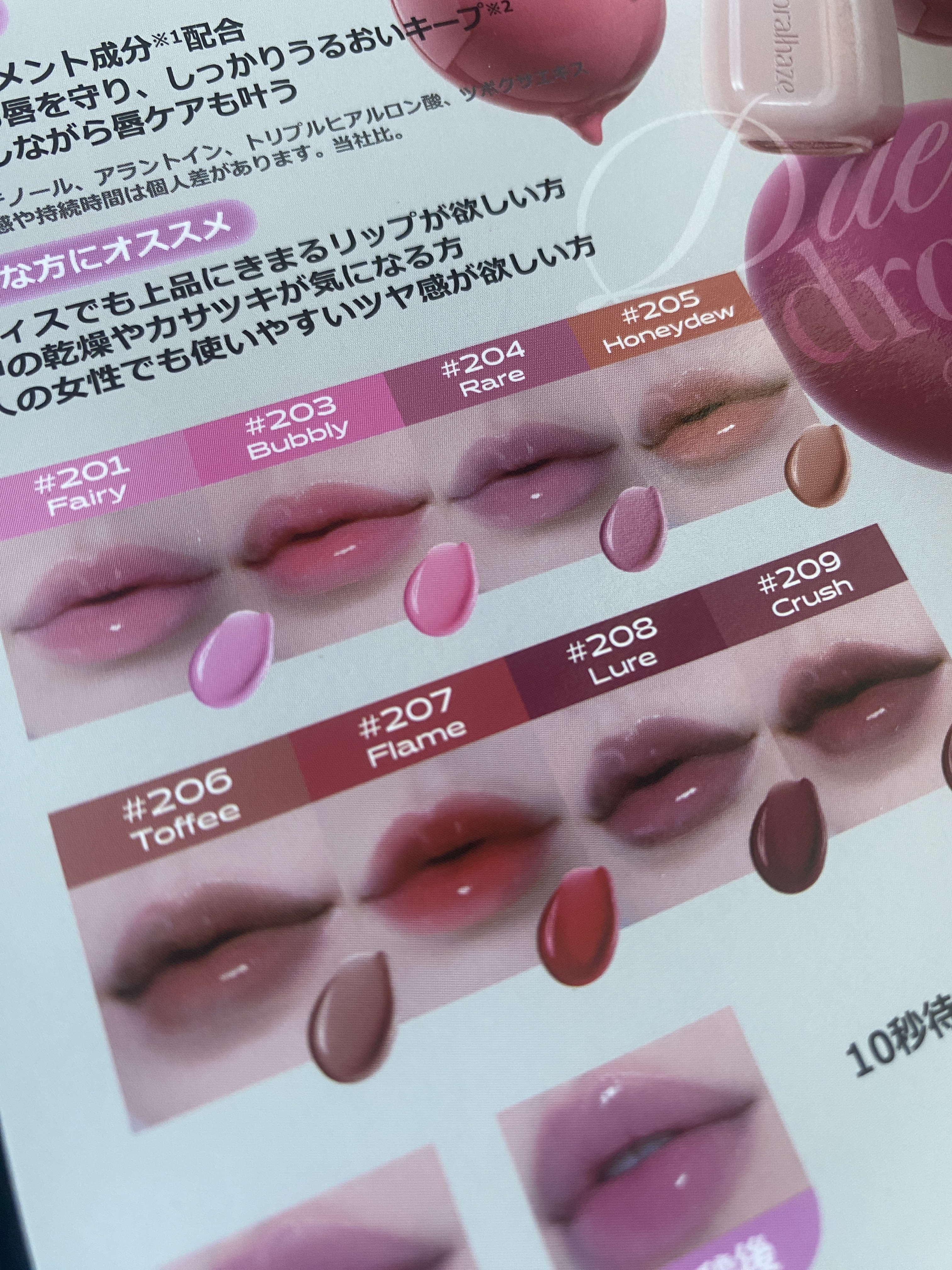 Coralhazeさまからご提供いただきました *⑅୨୧୨୧⑅*。 コーラルヘイズの新作ティント【デュードロップティント】私がお試ししたカラーは201Fairy203Bubbly205Honeydew206Toffeeカラーはランダムだったん...