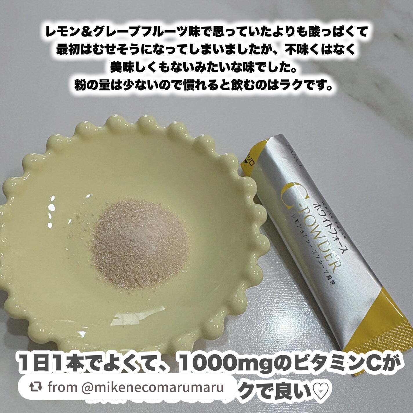 - 数量限定発売 ◆「トリプルビタミンC」を1,000mg配合 「トリプルビタミンC」は、体内に長く留まるビタミンC誘導体など、溶解性の異なる3種のビタミンCを配合しています。 汗などでビタミンCの失われやすい、夏の時期にも◎。 ほかにも「ヒドロキシチロソール」と「L-シスチン」「ハス胚芽エキス」を配合し、透明感のある美しい毎日をサポートします。 ◆爽やかなレモン&グレープフルーツ風味 水なしでそのまま飲めるパウダータイプのため、いつでもどこでも手軽にお召し上がりいただけます。 【1日の目安】 1本 【アレルゲン(28品目中)】 乳 【ご注意】 ※妊娠・授乳中の方、お子様はお召し上がりにならないでください。 ※2025年2月後半以降、商品パッケージリニューアル。