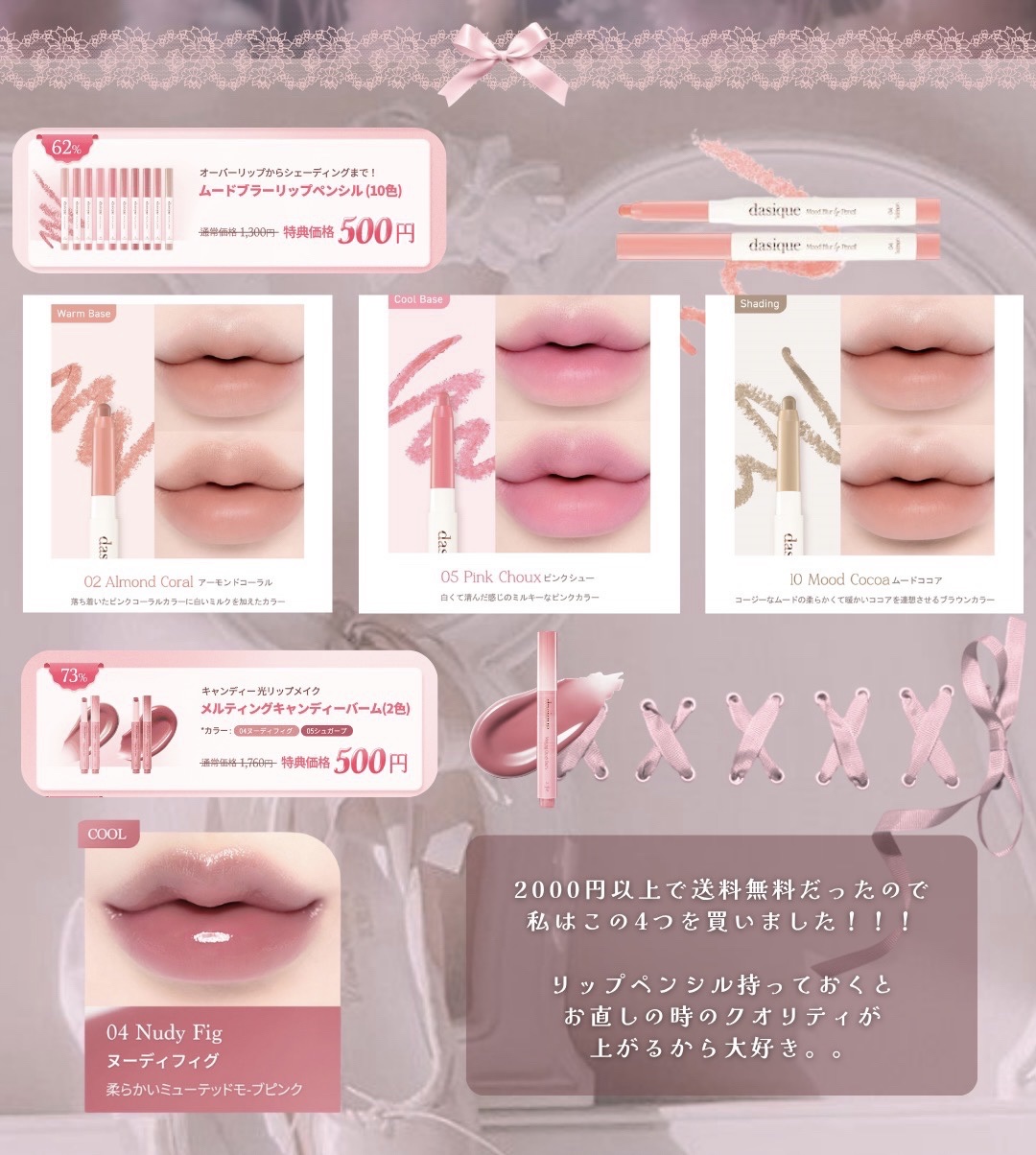 Qoo10でdasiqueの格安セールしてます💖 アプリで「デイジーク スペシャルdeal」を🔍 気になる商品があったらこの機会に試してみてください! #初買いコスメレビュー #dasique #Qoo10#デイジーク #リップスティック #リップペンシル #マットリップ #アイシャドウ