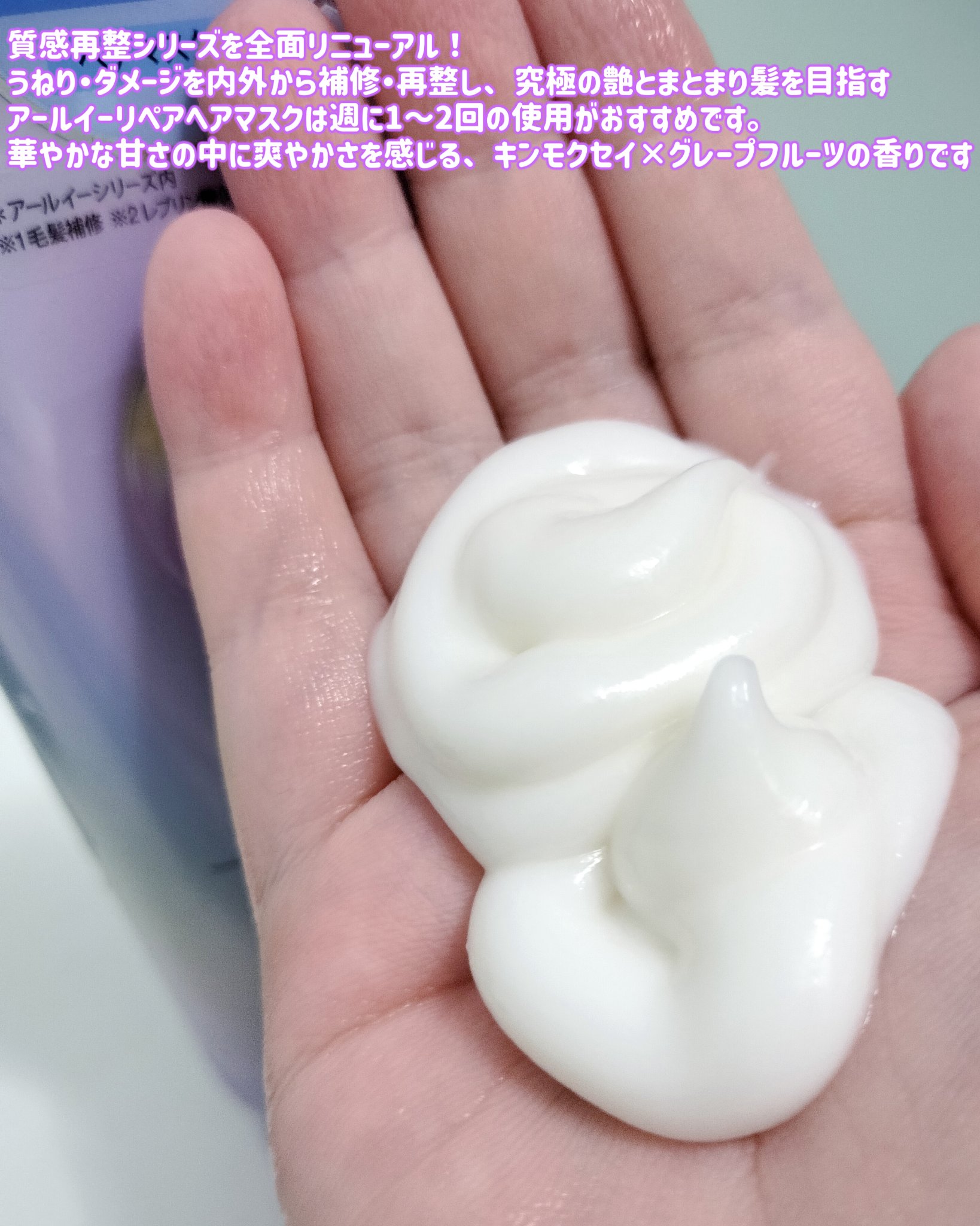 ルシードエルさまからいただきました。【アールイーリペアヘアマスク】✅2025/8/25にリニューアル発売サロン技術発想、毛髪補修成分※1最高濃度配合※2配合のヘアマスクです☑ドライヤー等による熱を与えることでヘアケア効果が促進され、毛先まで艶...