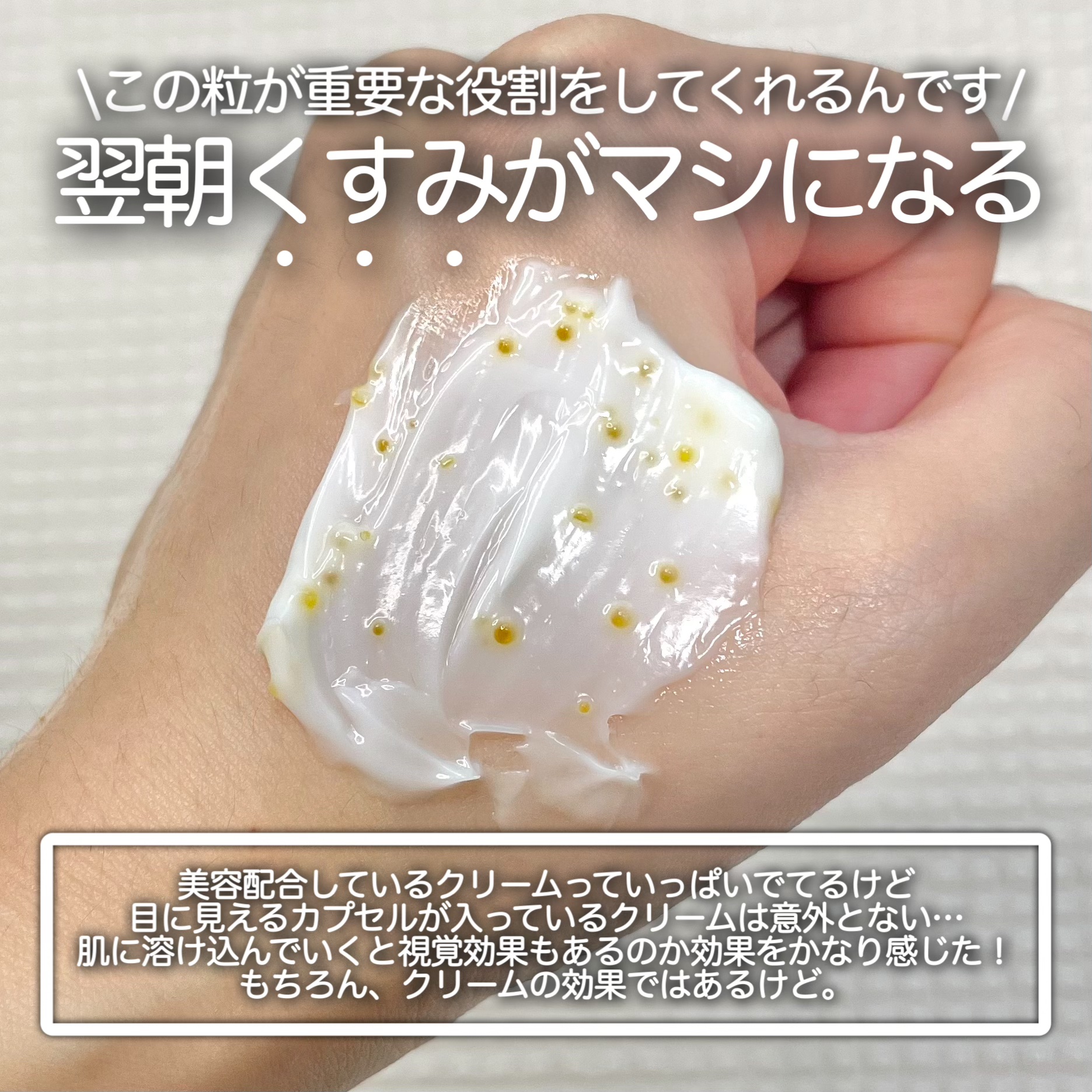 - ※リニューアル発売:旧称「ホワイトトリュフオイル カプセルクリーム」 ハリのあるお肌へ、保湿ダブルレイヤリングフォーミュラ - 溶け込むようになめらかに塗る密着保湿ベースと保湿光彩オイルカプセルが調和し、お肌にハリを与えます。 ローリングするほど明るく輝く光彩を放つVita-Cera Oil Capsule - セラミドとダルバブレンド-8オイルの強力な保湿でお肌をなめらかにするオイルカプセル 特許取得済みの無膜カプセルで残り感はZERO、甦る保湿光彩 - 特許を取得したメンブレン工法の無膜カプセルで、異物感なく素早く浸透し、しっかりとしたツヤ肌を実現します。 【ご使用方法】 適量を手にとり、肌にのばした後、手でやさしくこすりながらなじませます。 【使用上の注意】 お肌に異常が生じていないかよく注意して使用してください。 化粧品がお肌に合わないとき即ち次のような場合には、使用を中止してください。 そのまま使用を続けますと、症状を悪化させることがありますので、皮ふ科専門医等にご相談されることをおすすめします。 (1)使用中、赤味、はれ、かゆみ、刺激、色抜け(白斑等)や黒ずみ等の異常があらわれた場合 (2)使用したお肌に、直射日光があたって(1)のような異常があらわれた場合
