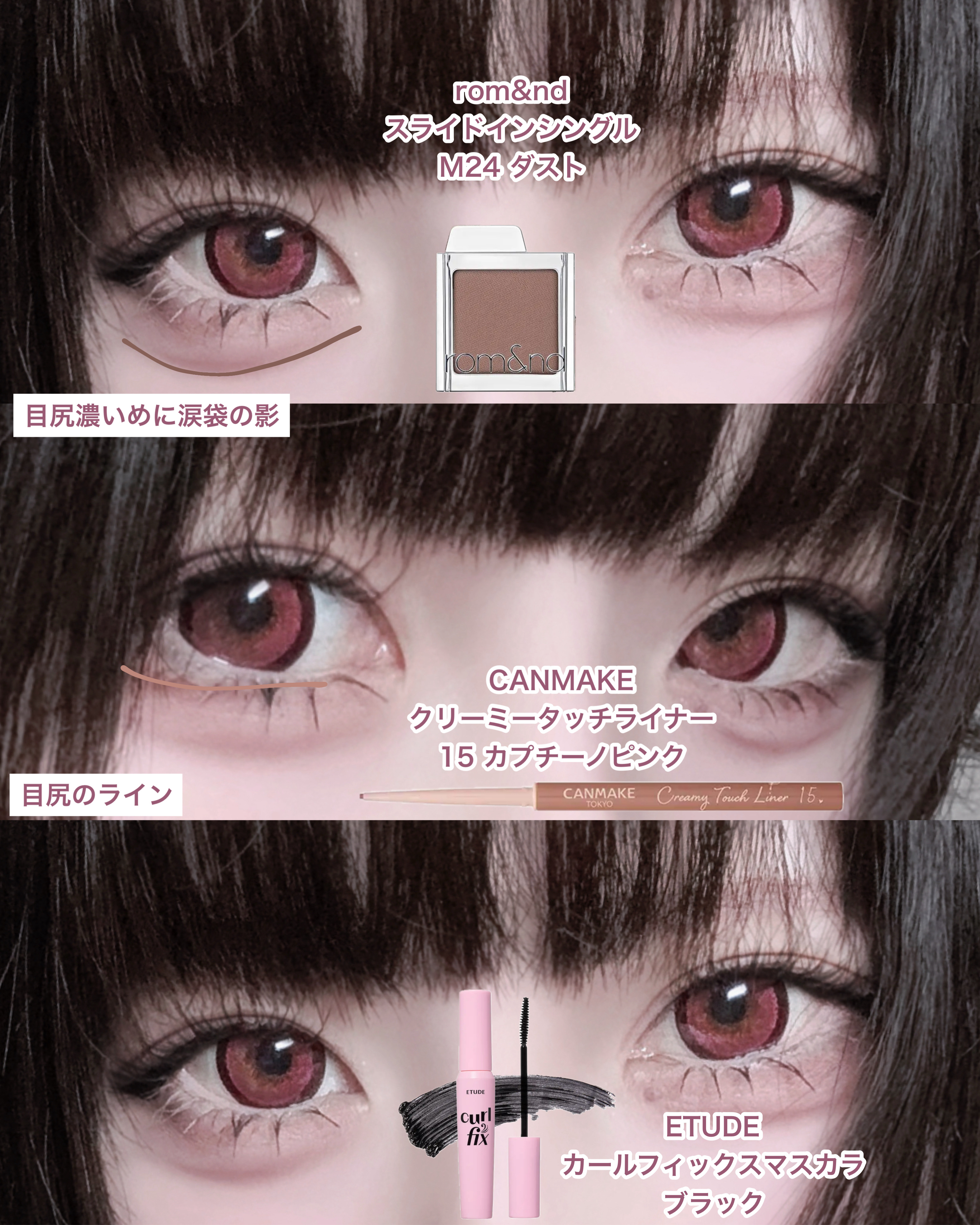 ❁︎❁︎一重、奥二重さん向け色素薄い系メイク❁︎❁︎⸜黒髪さんに似合う⸝裸眼でほんのりニュアンスピンクの色素薄い系メイク𓂃𓈒𓏸CANMAKE⚪︎パーフェクトスタイリストアイズ23アーモンドカヌレ⚪︎シルキースフレアイズ02ローズセピアニ...