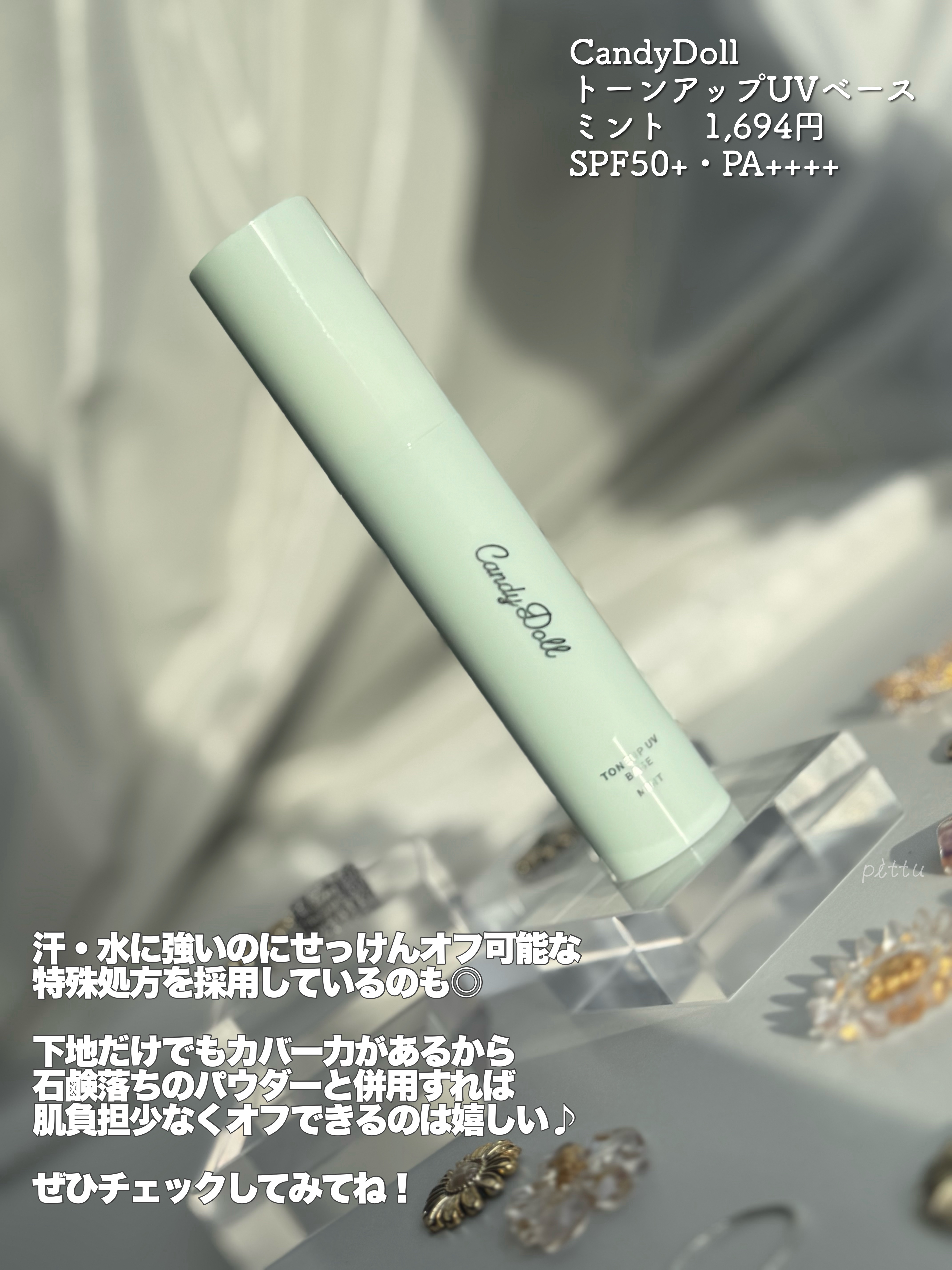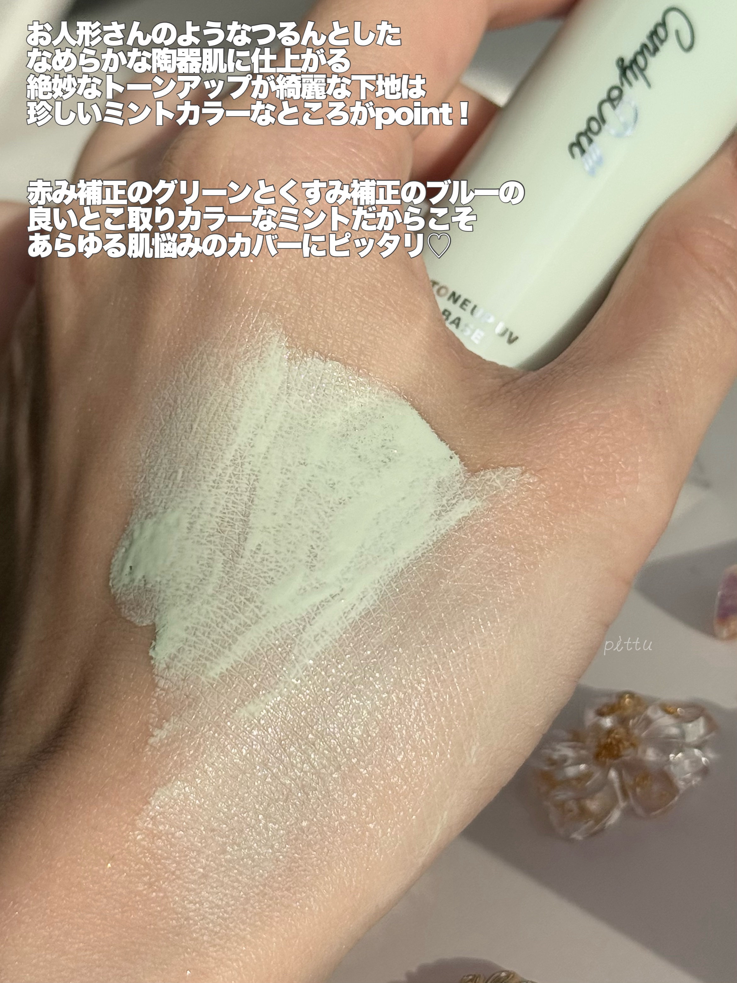 赤み補正して#陶器白肌*お肌ちゅるん下地♡*┈┈┈┈┈┈┈┈┈┈┈┈*▶︎CandyDoll【トーンアップUVベースミント】SPF50+PA++++/¥1,694(税込)*┈┈┈┈┈┈┈┈┈┈┈┈*✔︎肌悩み補正&高いトーンアップ* ミントカ...