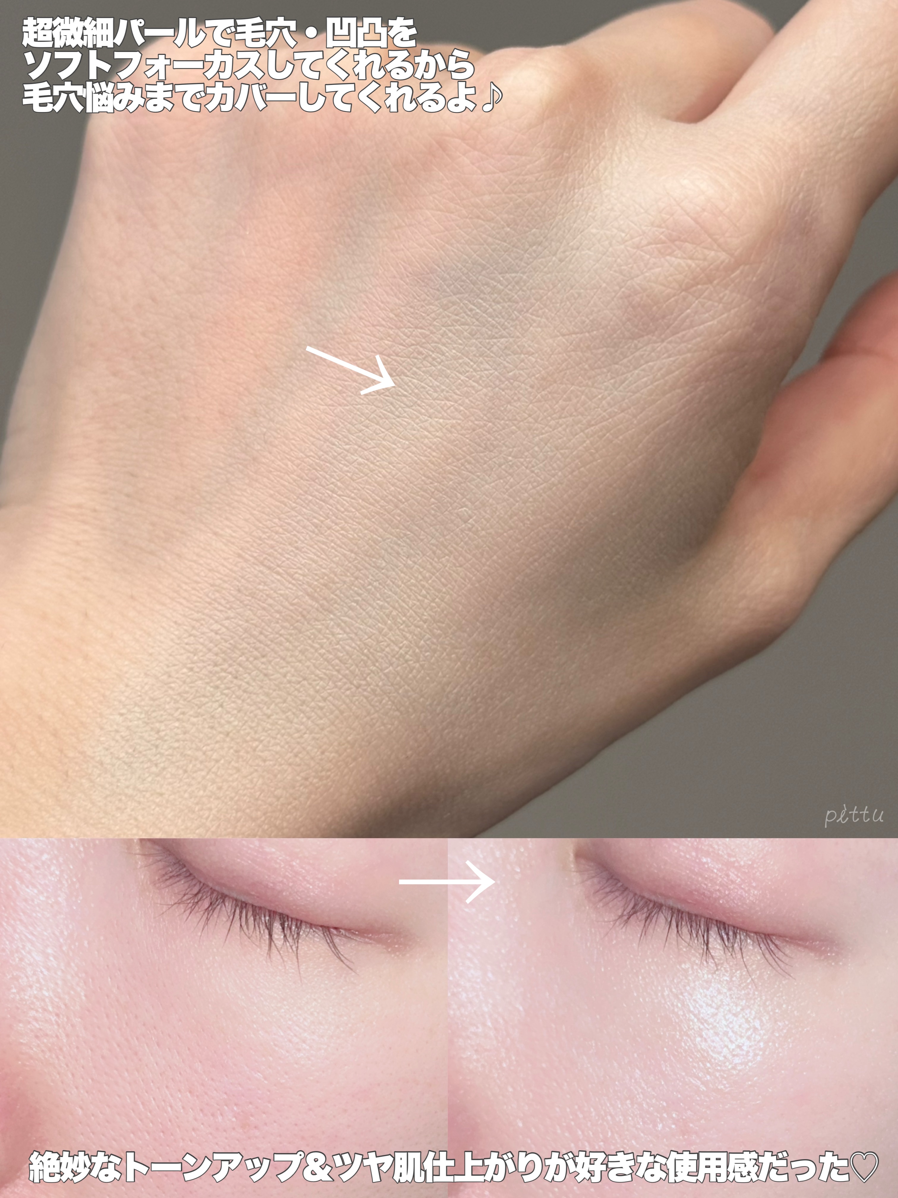 - 【RENEWAL】 \ブランド人気No.1ベースが全面リニューアル/ 「こだわりのトーンアップ力*」はそのままにより使いやすくアップグレード! 肌悩み補正*×トーンアップ*で誰でも透明感白肌*を演出できる #お肌ちゅるん下地 【商品POINT】 ①肌悩み補正*&トーンアップ* こだわりのいいとこどりカラーが肌悩みをカバー 高いトーンアップ効果*で美白*加工をかけたような パンっと明るい印象の透明感白肌*を演出 ②ちゅるん肌続くうるおいテクスチャー トーンアップ力*と伸びの良さを両立する 特殊処方を採用したテクスチャー ーお肌の上で質感が変化ー みずみずしいウォーターベースから オイルベースに変化しお肌をコーティング 汗・水に強いのに石けんオフできる特殊処方を採用 超微細パールの光拡散効果で毛穴凹凸を補正* なめらかで透明感*のあるちゅるん肌に ③国内最高値の紫外線カット効果 SPF50+PA++++で 紫外線をしっかりカットし肌を守ります ④肌ケア処方 12種類の美容保湿成分をたっぷりと配合 メイク中のお肌を保湿ケアしながら乾燥を防ぎ 余分な皮脂もケアしてテカリを防止 ⑤適量が出しやすく 最後まで使い切れるエアレス容器 亜鉛フリー・無香料 *メーキャップ効果による