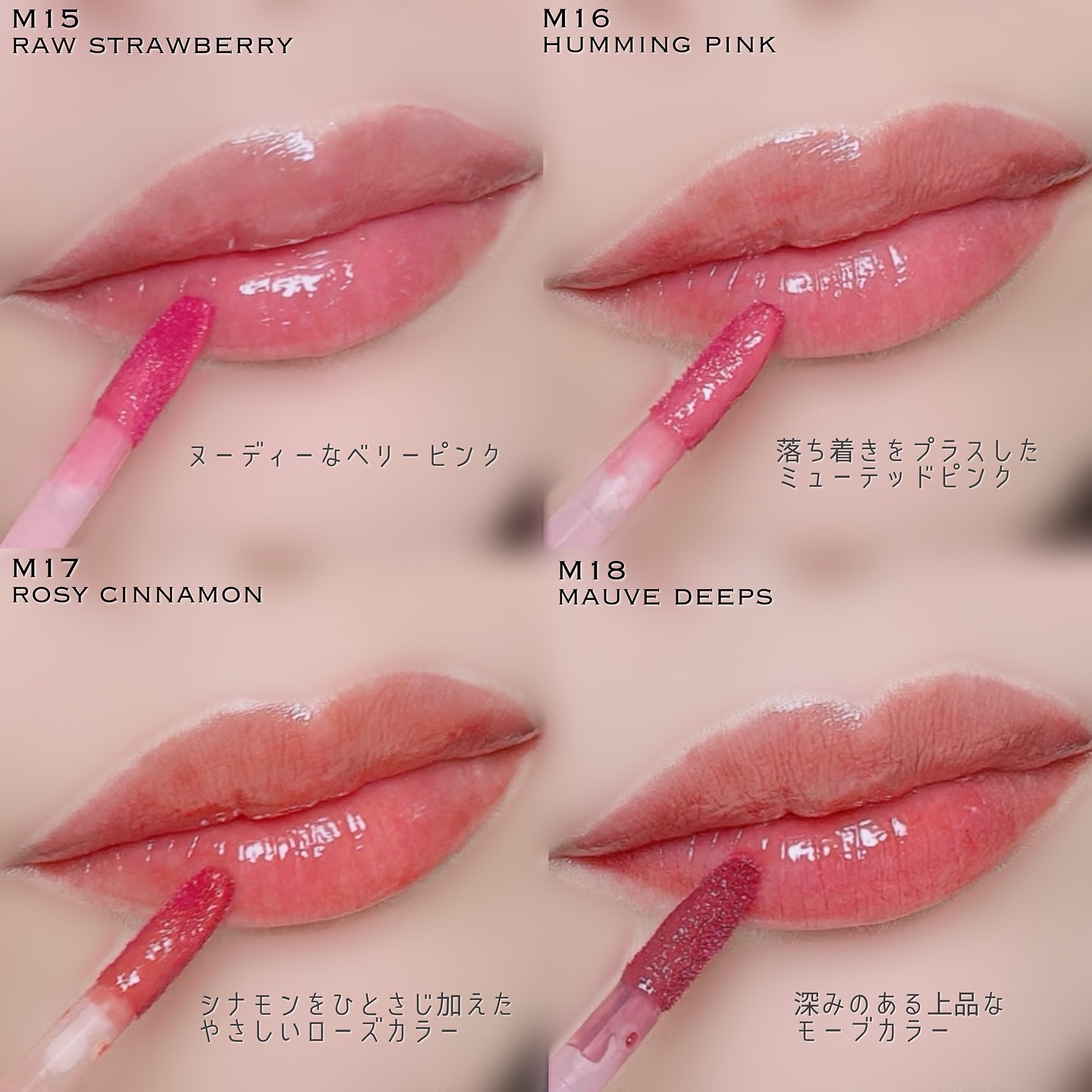 - 【夏新作2カラー登場!】 まるで果実のしずくがそのままリップになったような、みずみずしさと繊細なツヤを詰め込んだ「ジュージーデューイグロウティント」 夏新作で登場する新色「ベリーハート」、「タロミルク」は、透明感とふんわりとした色づきを徹底的にこだわって、何度もテストを重ねて生まれた特別なクールトーンカラー。 ひと塗りで唇をうるおし、重ねても重くならず、果実たっぷり!光をまとうような仕上がりに! - 蜂蜜に漬けた果物のように、うるちゅるふっくらとした果汁粘膜「ジューシーデュイグロウティント」 ミニだけの限定4色 15 ローストロベリー 16 ハミングピンク 17 ロージーシナモン 18 モーブディープス ♡唇に触れた途端、ぷるんと色っぽい果汁コーティング 果汁コーティングがじゅわっと唇に広がり、透明に輝くうるちゅる感を!蜂蜜に漬けた果物のようにぷるんぷるんとした唇を演出するグロウティント ♡イエベ、ブルべに合わせた多彩なカラーバリエーション 14色のカラーバリエーションで単独または、2色レイヤーリングして様々なリップメイクを演出 ♡ティント+リップグロスを一気に塗る効果! ティントの鮮やかな発色とリップグロスのうるうる透明ツヤ感が何度塗り重ねてもべたつかせず、唇にピタッと密着! 2025年11月1日(土)より、Qoo10公式ショップおよび東京フラッグシップストアにて発売予定