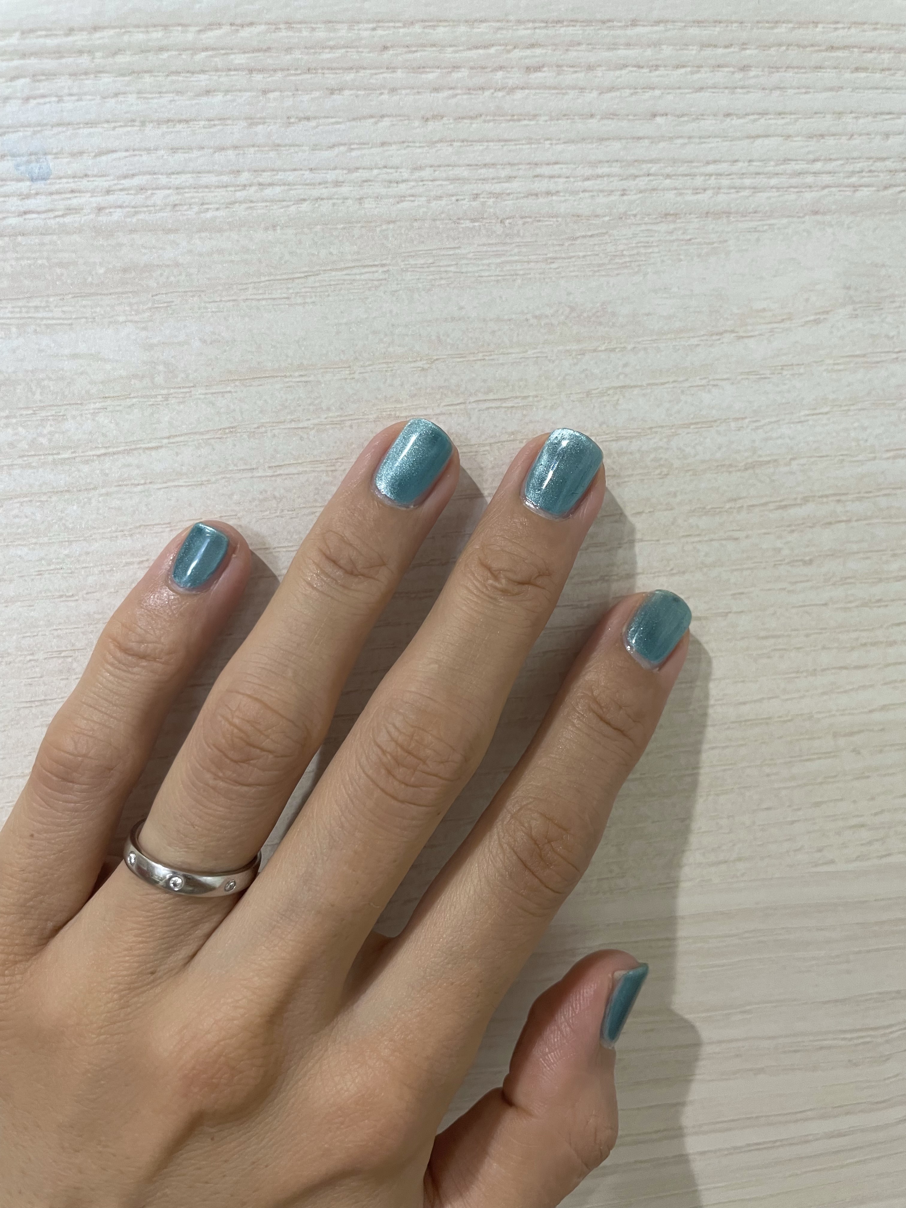 BBIA NS08グリーナリーくすみ抹茶ミルクのような色🍵💚一度塗りだと自爪が透けます。写真は二度塗りです。幅広の刷毛で塗りやすく、持ちも良かったです◎(ディーアップクリスタルクリアトップコートで仕上げ、翌日にセシェを重ねました。)ポリッシュ...