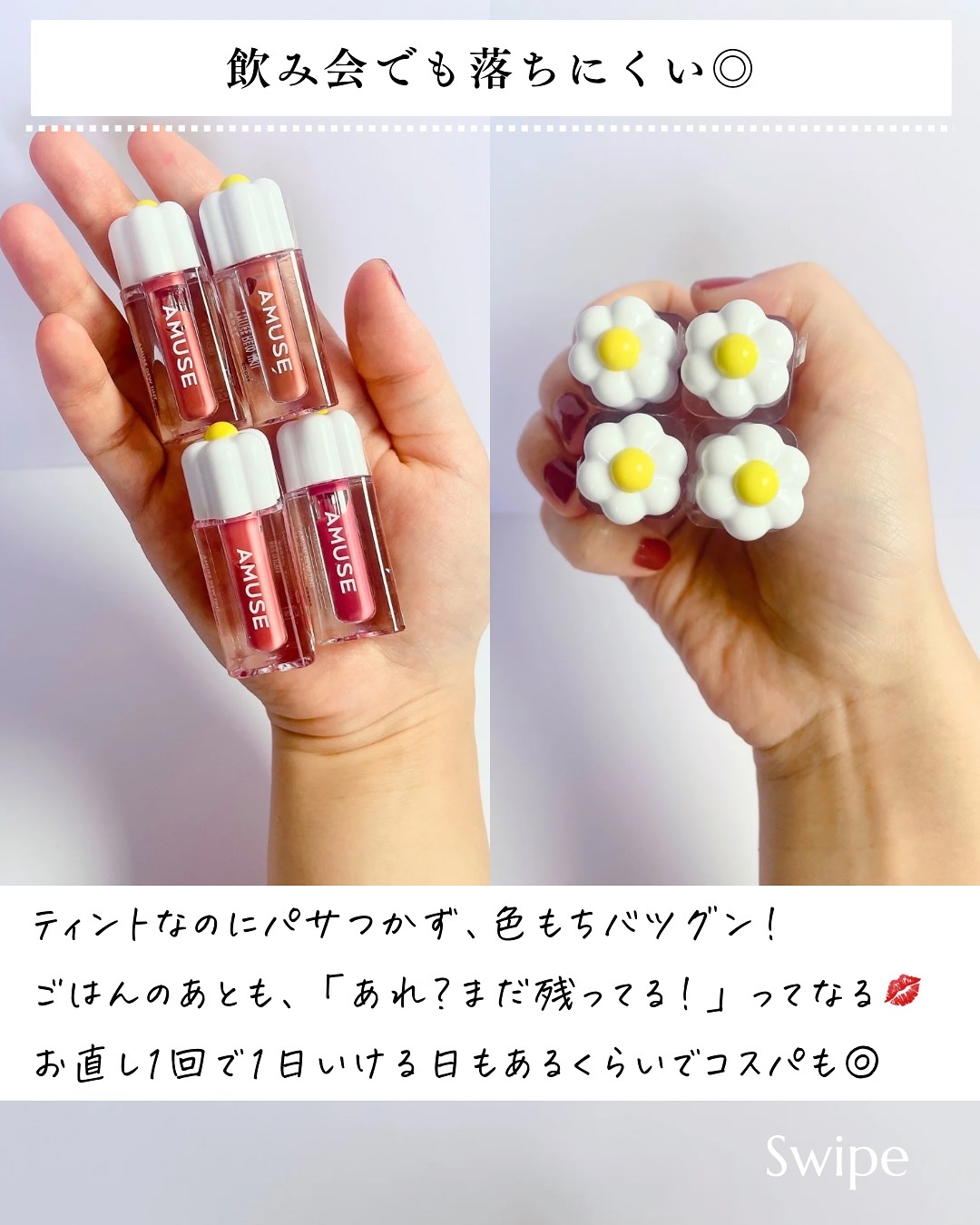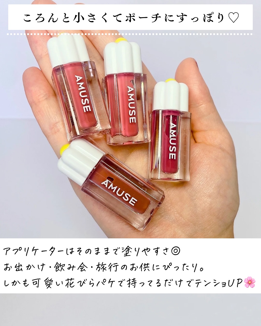 ************AMUSEミニジェルフィットティントミニデューティントAMUSEの人気のリップ2種からミニサイズが登場♡使用したカラーは以下の通り💄✔︎ミニジェルフィットティント05ベージュフィグ06ソウルガールパンプキンジェリー(日...