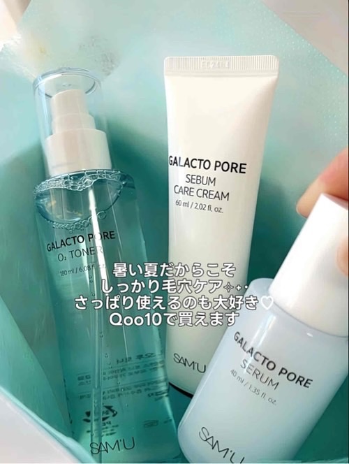 毛穴ケアにオススメ!SAM'U🔹ガラクトポアオーツートナー🔹ガラクトポアセラム🔹ガラクトポアセバムケアクリーム🔹ガラクトポアオーツートナーボトルを振ると発生する酸素バブルで毛穴汚れと過剰皮脂をOFF‼️優しく毛穴ケアできる少しとろみがありつつ...