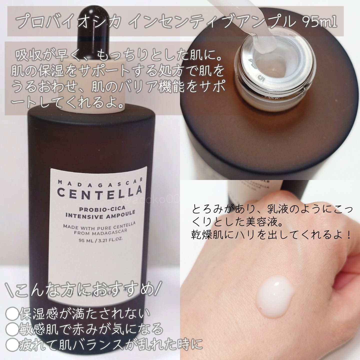 SKIN1004の美容液6種類を使ってみました🫶🏻´-肌悩みに合わせて使いたい美容液肌の赤みや水分不足が気になる方→センテラアンプルサラッとしたテクスチャーなので導入美容液としても使いやすかった🤍べたつかないしおすすめ◎プロバイオシカインセン...