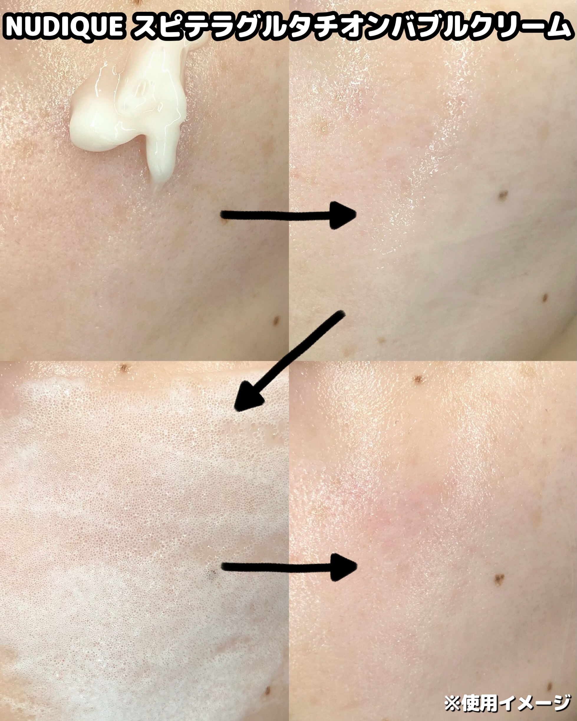 NUDIQUEスピテラグルタチオンバブルクリーム50ml3490円(税込)新感覚‼︎クリームがバブルに変化🫧シミやくすみだけじゃなくしわのケアまで🙌🏻日本産グルタチオン*¹ナイアシンアミド*²コラーゲン4種*³配合⭐️乳液のように柔らかいクリ...