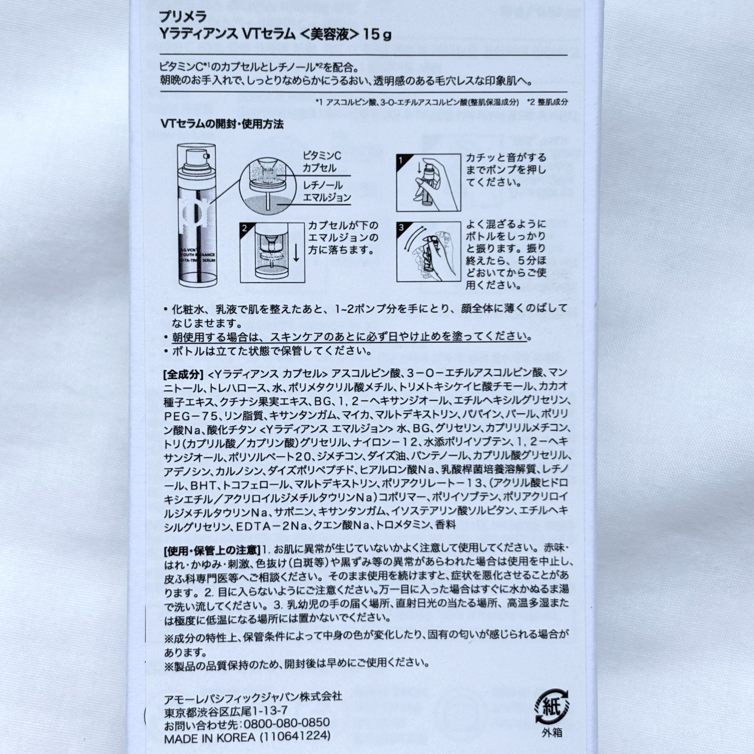 primera ユース ラディアンス ビタチノール セラム | 3,300円 |