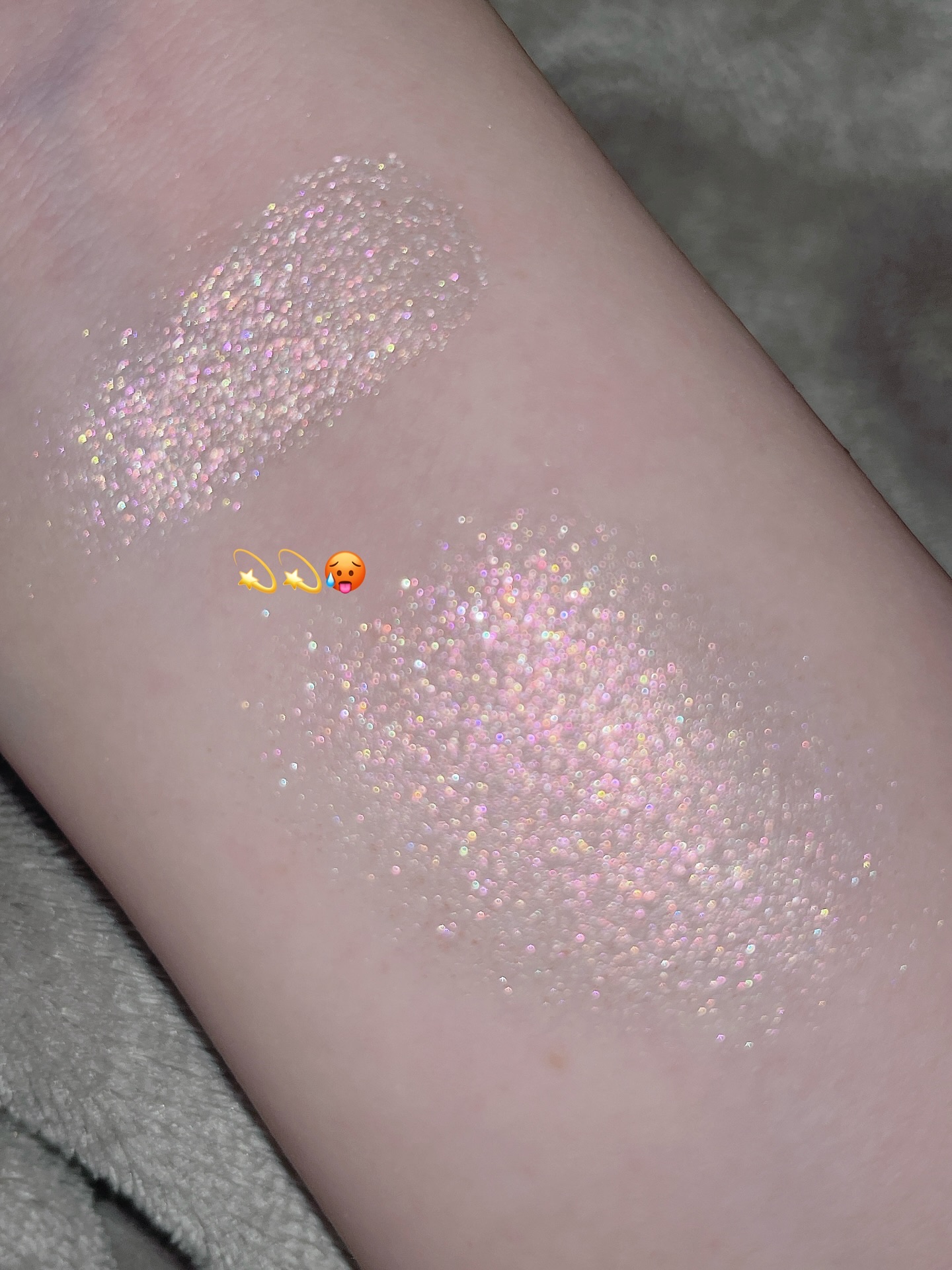 Ameli様よりいただきました。#gifted✂515REDSALTPINKCHICCHOC岩塩のような綺麗な白ピンク🤍🩷その中にちらちら赤いラメも。ハイライトのように頬のトップにも使えるよ〜☺️✨室内光でも輝きがすごい...🫣✨✨梱包も丁寧...