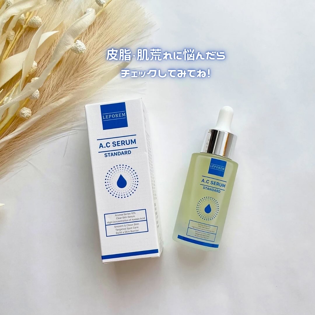 ルポレム 様の商品を紹介します‼︎★ACセラムSTANDARD純アゼライン酸10%配合の美容液ナイアシンアミド、ビタミンC、最高濃度のサリチル酸で皮脂による肌トラブルを防いでくれるよとろっとしたテクスチャーでお肌に馴染ませるとすぐに馴染みベタ...