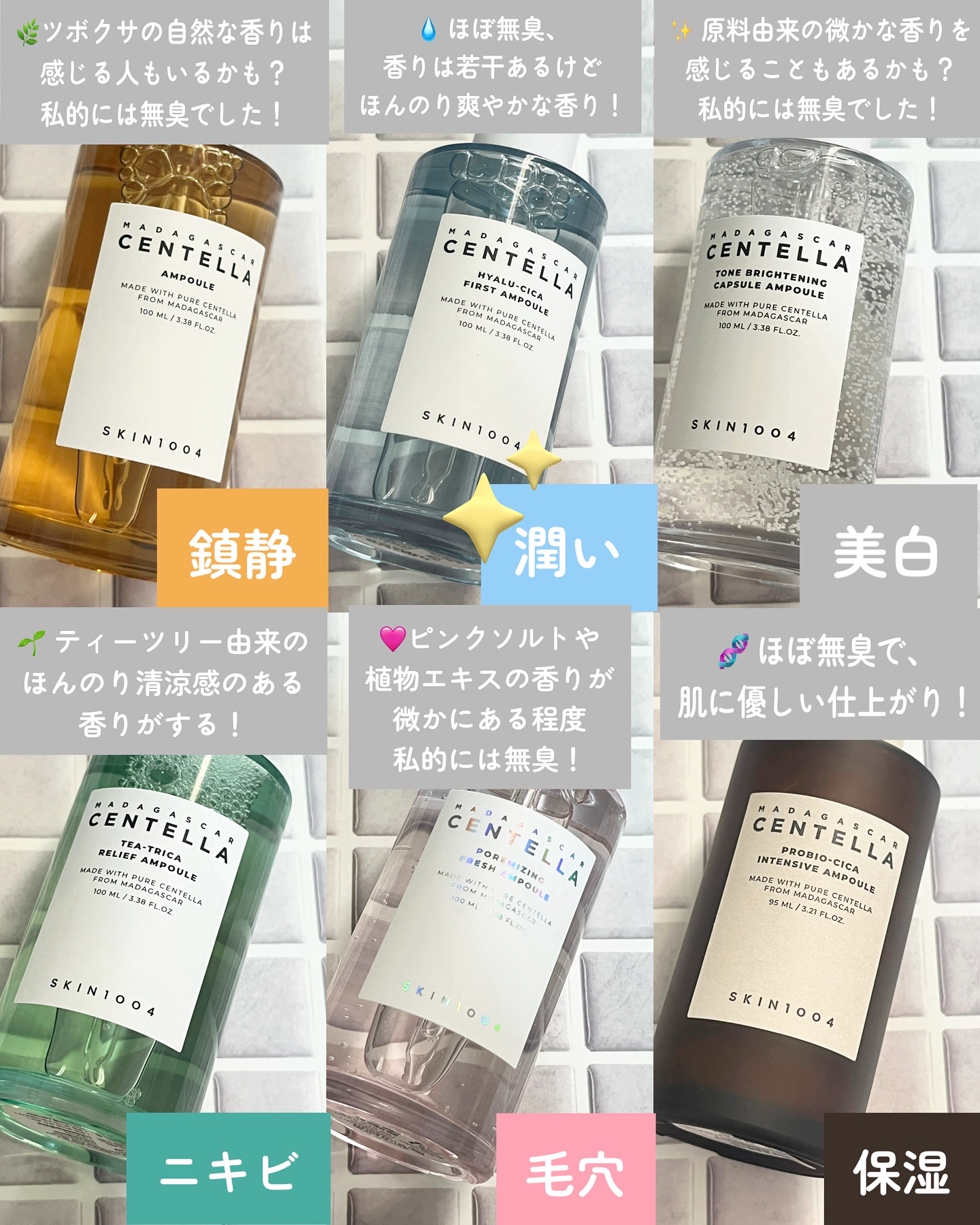あなたはどのタイプ?🫧◻︎SKIN1004・センテラアンプル・ヒアルーシカファーストアンプル・トーンブライトニングカプセルアンプル・ティーツリカリリーフアンプル・ポアマインジングフレッシュアンプル・プロバイオシカインセンティブアンプル自分の肌...
