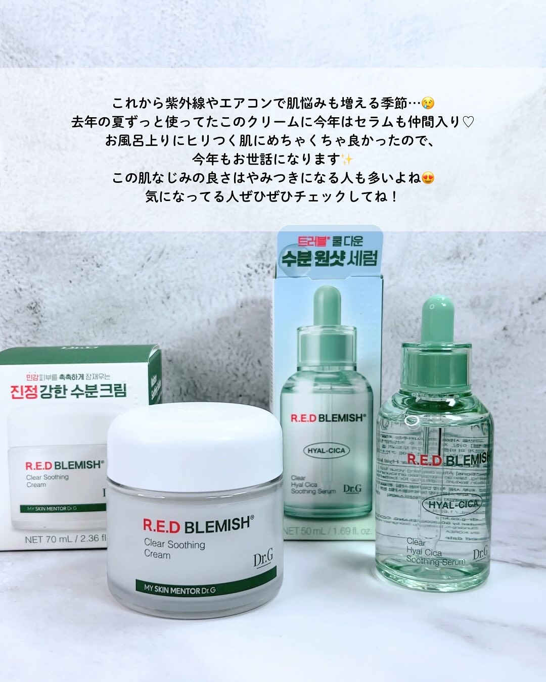 セットで使うと保湿ダブルシナジー効果UP🤍Dr.Gレッドブレミッシュクリアスージングクリームレッドブレミッシュヒアルシカセラム大人気クリームと新作のセラムと合わせて使ってみたよ!セラムは少しとろみのあるテクスチャーで肌にすっとなじんでくれる♥...