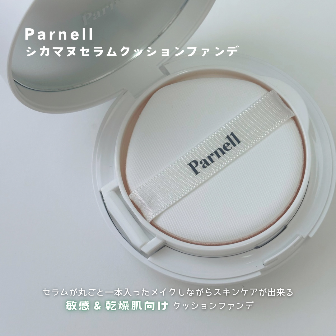 Parnell(パーネル)様のシカマヌセラムクッションファンデーションをお試しさせていただきました。シンプルでおしゃれなデザインのコンパクト。みずみずしいテクスチャーのクッションファンデーションです。優しい肌触りのパフで、すっと肌になじませる...