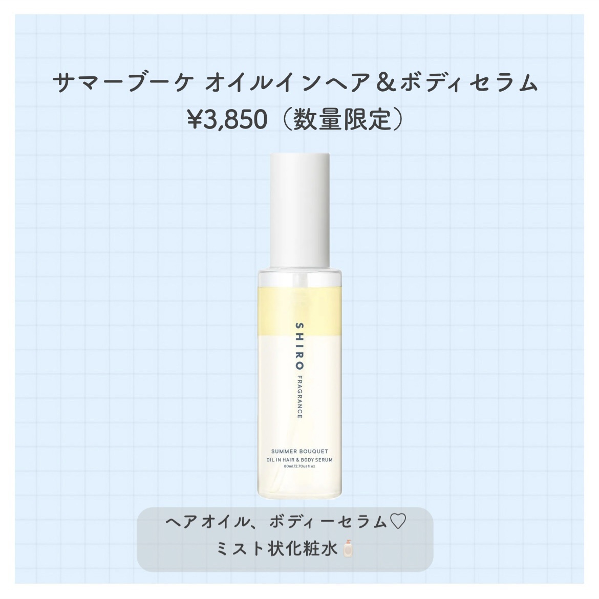 ꫛꫀꪝ!SHIROから新作が登場🥹🤍୨୧୨୧SHIROサマーブーケオードパルファン¥4,180サマーブーケフレグランスバーム¥3,300サマーブーケオイルインヘア&ボディセラム¥3,850୨୧୨୧是非チェックしてみてください🐰🎀また随時、新作...