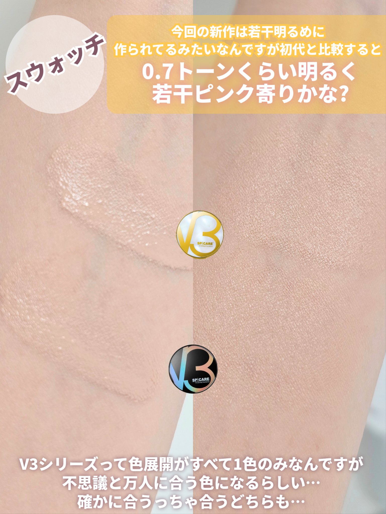 スピケア V3インテリジェントファンデーションパフでポンポンってスタンプするようにのせると肌にふわっとフィットしてくれる感じでら厚塗り感が出にくいのに、気になるところは自然にカバーしてくれて「素肌感を残しながら綺麗な肌になる」のが好みの質感だ...