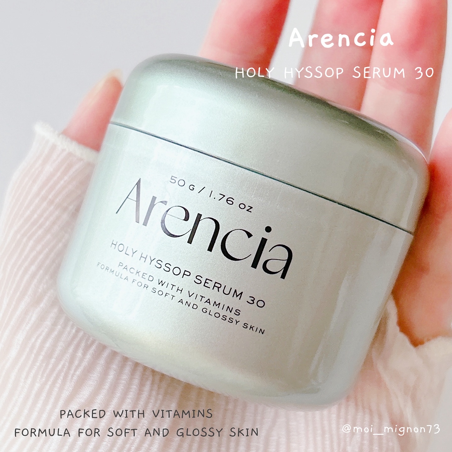 Arenciaアレンシアヒソップもちセラム🌙夜のスキンケアになめらかな肌へ導くナイトセラム🫧透明グリーンの綺麗なゲルフランス産ヒソップエキス×VitaminACEComplex®で年齢肌やくすみが気になる方の頼れる一滴💫使い方は夜スキンケアに...