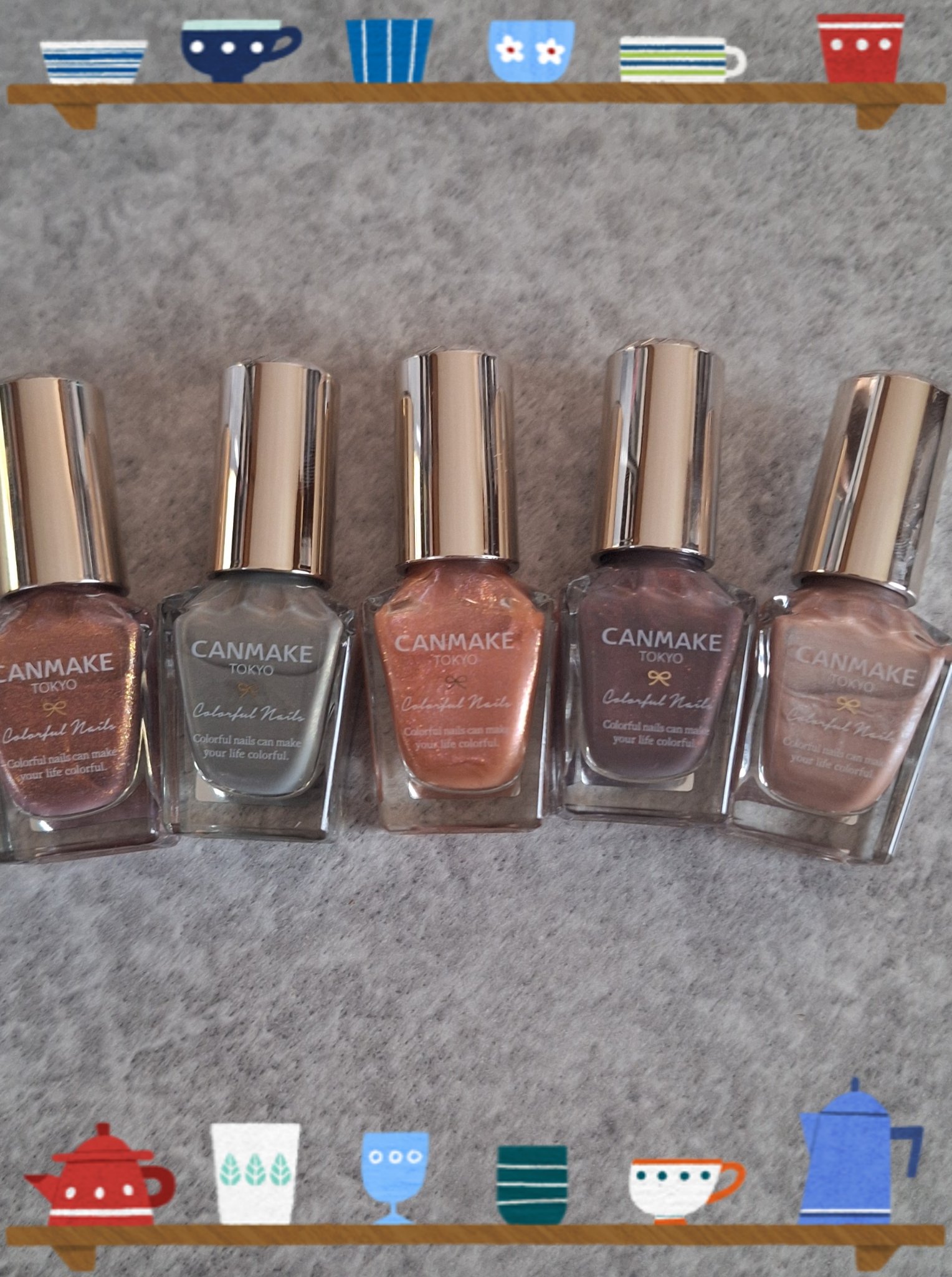 - <N02 シックボルドー> 酢酸ブチル、酢酸エチル、ニトロセルロース、(アジピン酸/ネオペンチルグリコール/無水トリメリト酸)コポリマー、クエン酸アセチルトリブチル、イソプロパノール、アクリレーツコポリマー、ステアラルコニウムベントナイト、酸化鉄、ブタノール、オキシベンゾン-1、シリカ、赤220、ジアセトンアルコール、酸化チタン、リン酸、カーボンブラック、ジ安息香酸トリメチルペンタンジイル、黄4、赤226 [旧]酢酸ブチル、酢酸エチル、ニトロセルロース、(アジピン酸/ネオペンチルグリコール/無水トリメリト酸)コポリマー、クエン酸アセチルトリブチル、イソプロパノール、アクリレーツコポリマー、ステアラルコニウムベントナイト、(スチレン/アクリレーツ)コポリマー、酸化鉄、ブタノール、シリカ、オキシベンゾン-1、赤220、ジアセトンアルコール、酸化チタン、ジ安息香酸トリメチルペンタンジイル、リン酸、カーボンブラック、黄4 <N08 ミスティモーヴ> 酢酸ブチル、酢酸エチル、ニトロセルロース、(アジピン酸/ネオペンチルグリコール/無水トリメリト酸)コポリマー、クエン酸アセチルトリブチル、イソプロパノール、アクリレーツコポリマー、ステアラルコニウムベントナイト、酸化チタン、ブタノール、シリカ、オキシベンゾン-1、マンガンバイオレット、ジアセトンアルコール、酸化鉄、赤226、リン酸、カオリン、ジ安息香酸トリメチルペンタンジイル、黄4 [旧] 酢酸ブチル、酢酸エチル、ニトロセルロース、(アジピン酸/ネオペンチルグリコール/無水トリメリト酸)コポリマー、クエン酸アセチルトリブチル、イソプロパノール、アクリレーツコポリマー、ステアラルコニウムベントナイト、(スチレン/アクリレーツ)コポリマー、酸化チタン、ブタノール、オキシベンゾン-1、シリカ、酸化鉄、ジアセトンアルコール、マンガンバイオレット、ジ安息香酸トリメチルペンタンジイル、リン酸、カーボンブラック、黄4 <N10 ペールラベンダー> 酢酸ブチル、酢酸エチル、ニトロセルロース、(アジピン酸/ネオペンチルグリコール/無水トリメリト酸)コポリマー、クエン酸アセチルトリブチル、イソプロパノール、アクリレーツコポリマー、ステアラルコニウムベントナイト、酸化チタン、ブタノール、酸化鉄、オキシベンゾン-1、シリカ、ジアセトンアルコール、マンガンバイオレット、リン酸、ジ安息香酸トリメチルペンタンジイル、黄4、赤226 [旧]酢酸ブチル、酢酸エチル、ニトロセルロース、(アジピン酸/ネオペンチルグリコール/無水トリメリト酸)コポリマー、クエン酸アセチルトリブチル、イソプロパノール、アクリレーツコポリマー、ステアラルコニウムベントナイト、酸化チタン、ブタノール、シリカ、オキシベンゾン-1、ジアセトンアルコール、酸化鉄、ジ安息香酸トリメチルペンタンジイル、マンガンバイオレット、リン酸、黄4 <N12 アーモンドグリーン> 酢酸ブチル、酢酸エチル、ニトロセルロース、(アジピン酸/ネオペンチルグリコール/無水トリメリト酸)コポリマー、クエン酸アセチルトリブチル、イソプロパノール、アクリレーツコポリマー、ステアラルコニウムベントナイト、(スチレン/アクリレーツ)コポリマー、酸化チタン、ブタノール、シリカ、オキシベンゾン-1、ジアセトンアルコール、ジ安息香酸トリメチルペンタンジイル、黄4、カーボンブラック、リン酸、コンジョウ <N16 ココア> 酢酸ブチル、酢酸エチル、ニトロセルロース、(アジピン酸/ネオペンチルグリコール/無水トリメリト酸)コポリマー、クエン酸アセチルトリブチル、イソプロパノール、酸化チタン、アクリレーツコポリマー、ステアラルコニウムベントナイト、酸化鉄、ブタノール、シリカ、オキシベンゾン-1、ジアセトンアルコール、黄4、リン酸、ジ安息香酸トリメチルペンタンジイル、カーボンブラック、赤226 [旧]酢酸ブチル、酢酸エチル、ニトロセルロース、(アジピン酸/ネオペンチルグリコール/無水トリメリト酸)コポリマー、クエン酸アセチルトリブチル、イソプロパノール、酸化チタン、アクリレーツコポリマー、ステアラルコニウムベントナイト、ブタノール、酸化鉄、シリカ、オキシベンゾン-1、ジアセトンアルコール、ジ安息香酸トリメチルペンタンジイル、黄4、リン酸、カーボンブラック <N17 クリームチャイ> 酢酸ブチル、酢酸エチル、ニトロセルロース、(アジピン酸/ネオペンチルグリコール/無水トリメリト酸)コポリマー、クエン酸アセチルトリブチル、イソプロパノール、アクリレーツコポリマー、ステアラルコニウムベントナイト、(スチレン/アクリレーツ)コポリマー、酸化チタン、ブタノール、シリカ、オキシベンゾン-1、ジアセトンアルコール、ジ安息香酸トリメチルペンタンジイル、酸化鉄、リン酸、黄4、カーボンブラック <N19 スウィートコーラル> 酢酸ブチル、酢酸エチル、ニトロセルロース、(アジピン酸/ネオペンチルグリコール/無水トリメリト酸)コポリマー、クエン酸アセチ