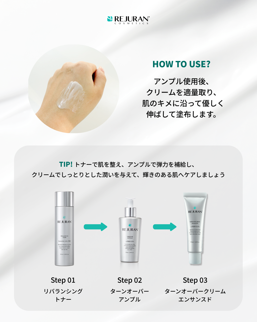 韓国のスキンケアブランド、リジュランのターンオーバークリーム。c-PDRNが配合され、お肌の弾力・アンチエイジングが可能。肌の内面から満ちてくる健康的な肌、ツヤ感のある肌根本ケアをしてくれるアイテムです。・肌再生のためのキーポイント成分PDR...