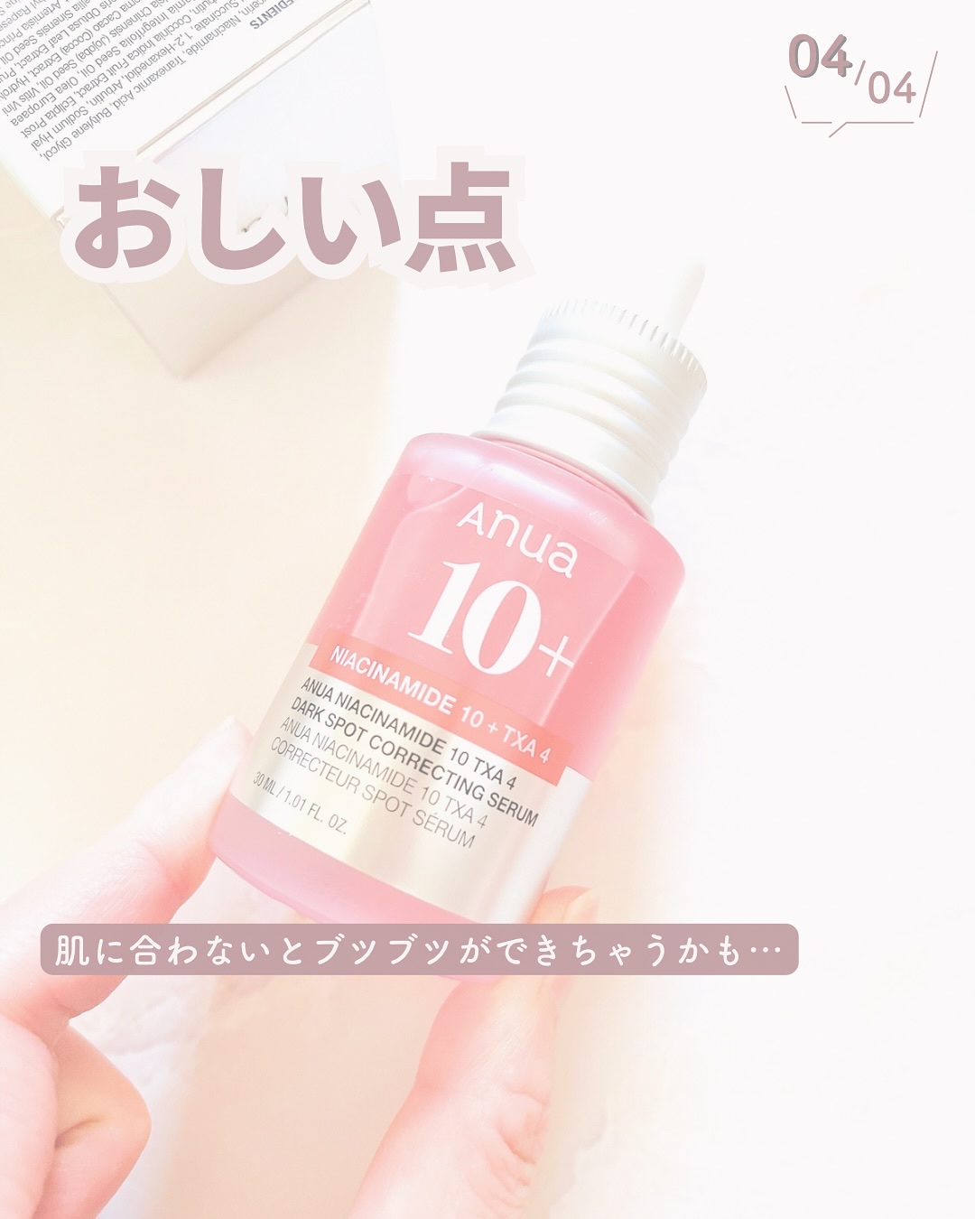 【ニキビ爆誕😞肌に合わなかった正直レビュー👼🏻】🔖.·Anuaダークスポットセラム2800円(税込)Qoo10にて購入♡💡´-肌本来の輝きを引き出し透明感のある健康的な印象へ※公式様よりバズ美容液の正直レビュー👼🏻⭐️肌について混合肌(脂性肌...