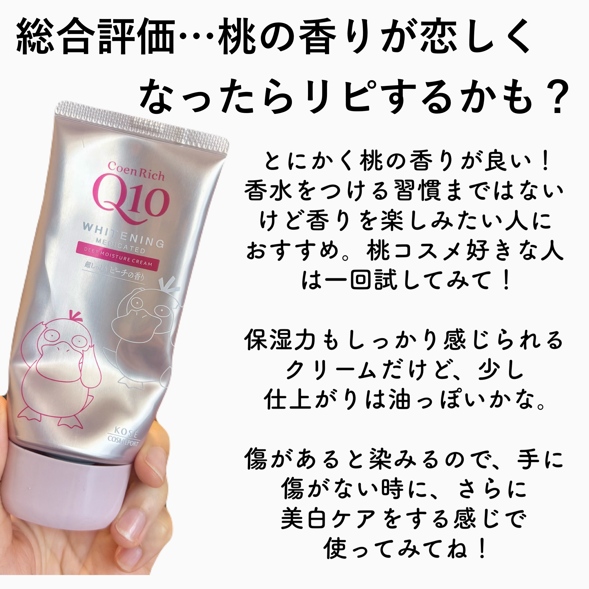 商品詳細情報コエンリッチQ10 コエンリッチ 薬用ホワイトニング ハンドクリーム ディープモイスチュア もぎたてピーチの香り【医薬部外品】