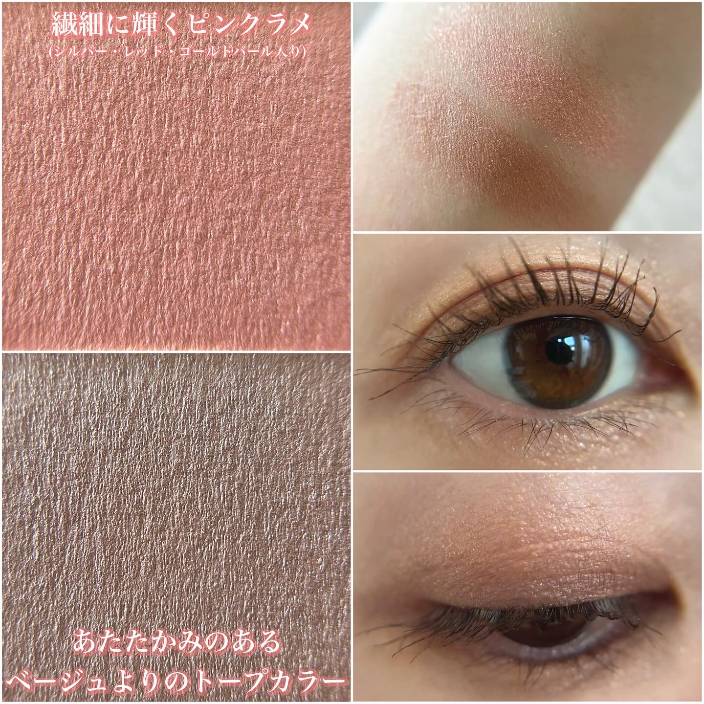まずですね、ブルベよりかと思いきや、真ん中がピンク系ブラウンなんですよ! 真ん中の色が中和役になりますね! そして左上のグレイッシュカラー…既視感あるなーと思ったら大好きなモノクルールのベージュミッツァ! スウォッチで比べてみたらサンクの方がグレイッシュでしたね! 締め色もしっかりしてるしトータル的にバランスのいいパレット そしてやはり粉質が好きですね! ベースなしで使っても色もちも発色も抜群すぎてDiorさん流石ですってなりました👍 どちらかというとサマーよりのカラーの方が透明感がでます^ ^ ニュートラルな肌でサマー要素やブルベよりの肌の方はとってもハマるブラウンシャドウだと思います🥰 一つ前に投稿したルミナイザーと合わせても可愛くてお気に入りです♪