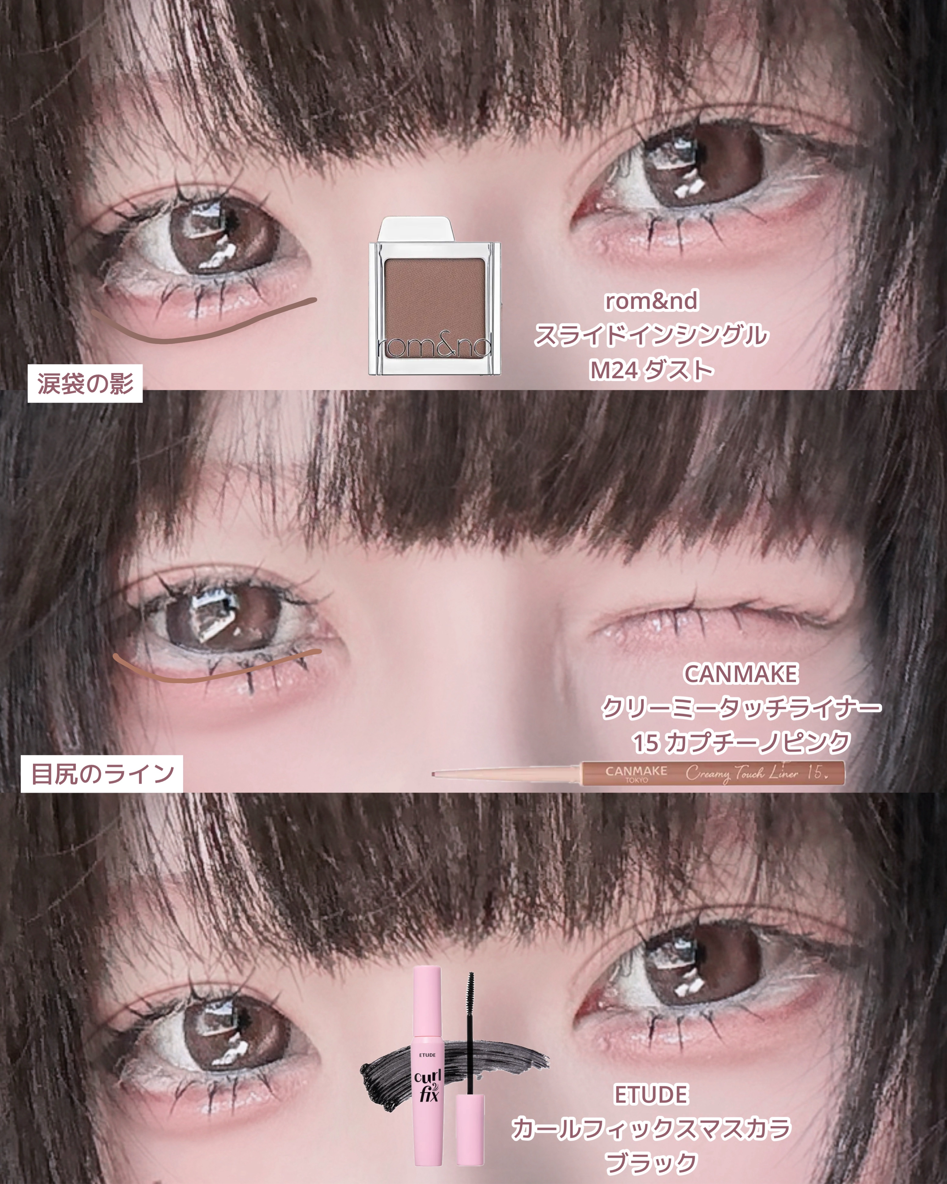 まつ毛の束感の作り方⤵︎⤵︎⤵︎ クマの隠し方と眉毛については後日詳しく紹介します.ᐟ .ᐟ 特にクマの隠し方はめちゃめちゃおすすめの方法なのでビフォーアフターで紹介します!