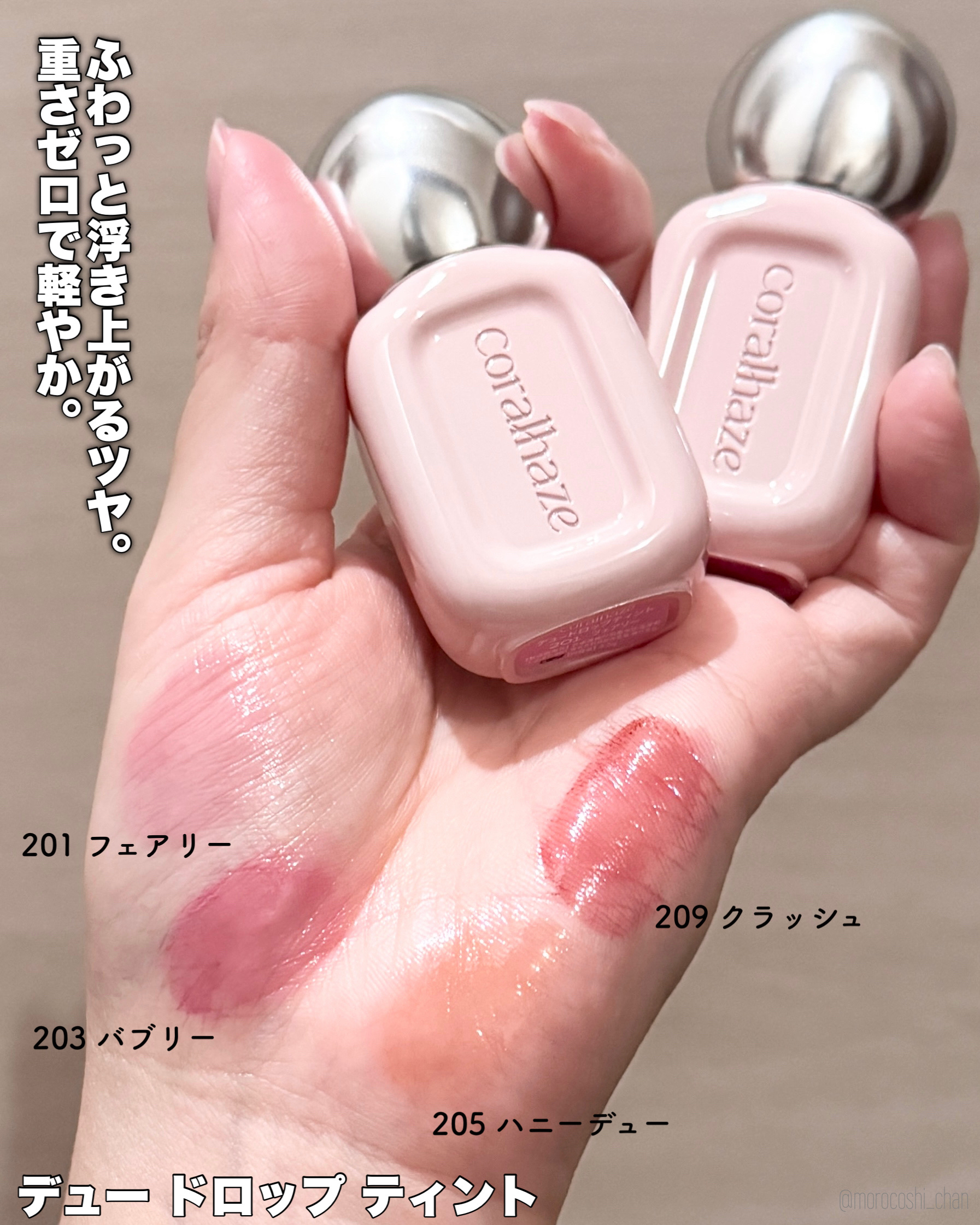 #coralhaze☑︎#デュードロップティント(全8色) ↪︎201フェアリー ↪︎203バブリー ↪︎205ハニーデュー ↪︎209クラッシュ高発色でツヤ感あふれるティント軽い付け心地で、オイルリップの様な付け心地8月7日(木)より...