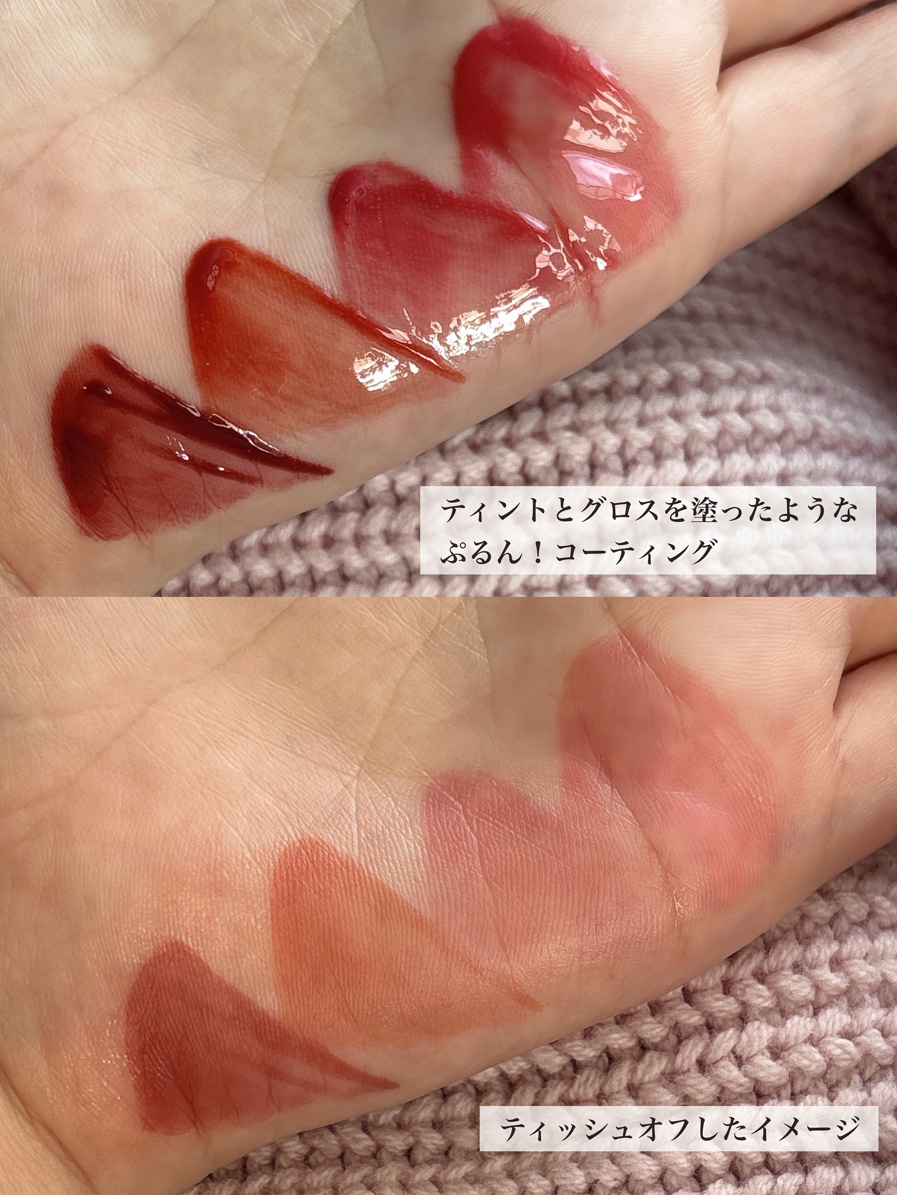 - 【夏新作2カラー登場!】 まるで果実のしずくがそのままリップになったような、みずみずしさと繊細なツヤを詰め込んだ「ジュージーデューイグロウティント」 夏新作で登場する新色「ベリーハート」、「タロミルク」は、透明感とふんわりとした色づきを徹底的にこだわって、何度もテストを重ねて生まれた特別なクールトーンカラー。 ひと塗りで唇をうるおし、重ねても重くならず、果実たっぷり!光をまとうような仕上がりに! - 蜂蜜に漬けた果物のように、うるちゅるふっくらとした果汁粘膜「ジューシーデュイグロウティント」 ミニだけの限定4色 15 ローストロベリー 16 ハミングピンク 17 ロージーシナモン 18 モーブディープス ♡唇に触れた途端、ぷるんと色っぽい果汁コーティング 果汁コーティングがじゅわっと唇に広がり、透明に輝くうるちゅる感を!蜂蜜に漬けた果物のようにぷるんぷるんとした唇を演出するグロウティント ♡イエベ、ブルべに合わせた多彩なカラーバリエーション 14色のカラーバリエーションで単独または、2色レイヤーリングして様々なリップメイクを演出 ♡ティント+リップグロスを一気に塗る効果! ティントの鮮やかな発色とリップグロスのうるうる透明ツヤ感が何度塗り重ねてもべたつかせず、唇にピタッと密着! 2025年11月1日(土)より、Qoo10公式ショップおよび東京フラッグシップストアにて発売予定