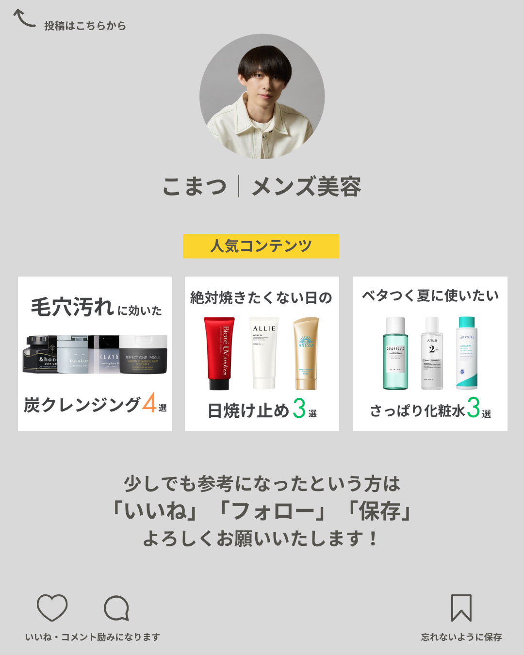 ニキビは日頃の生活習慣や洗顔の方法など様々な要素が原因で現れてしまいます、、! ニキビを早めに対処することはニキビ跡の予防にも繋がります👍 男性だと化粧水と乳液は使うけど、美容液は使わないという方も多いはずなので、投稿を参考にしていただけたらと思います!