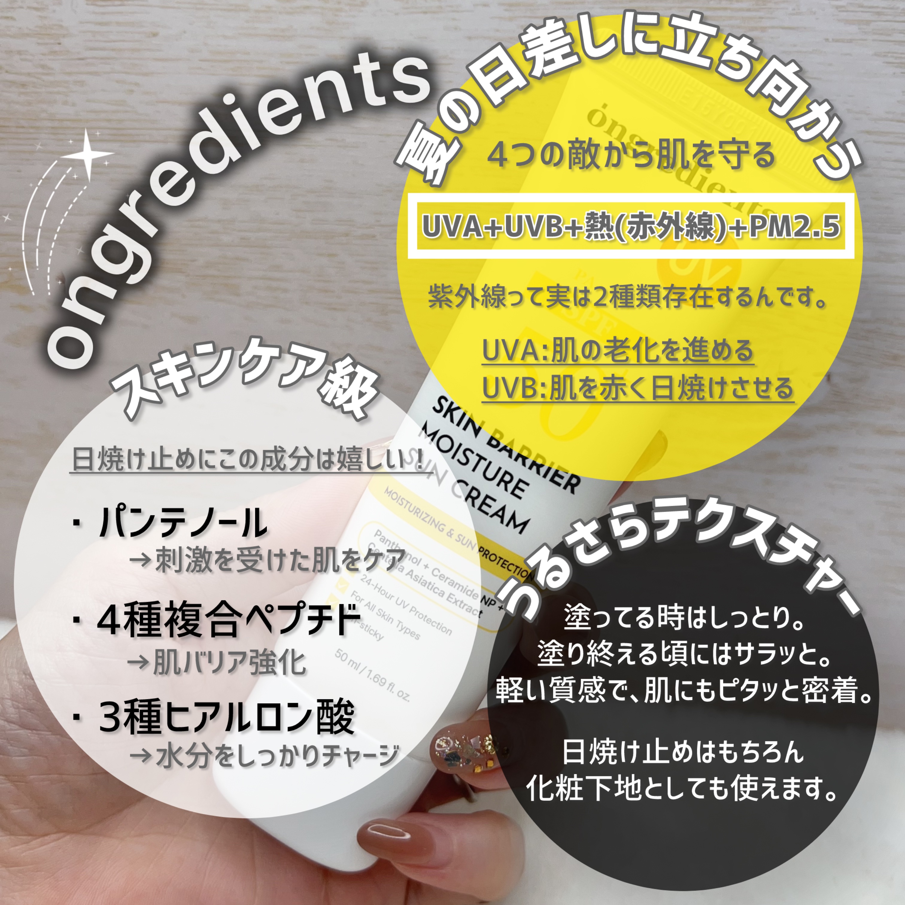 \話題のスキンケアブランドから日焼け止め☀/Ongredientsスキンバリアモイスチャーサンクリーム#PR⋆⋆韓国で人気急上昇中のスキンケアブランド、Ongredients🌿!洗顔やクッション、そしてメイク前におすすめの乳液などリピ率が高...