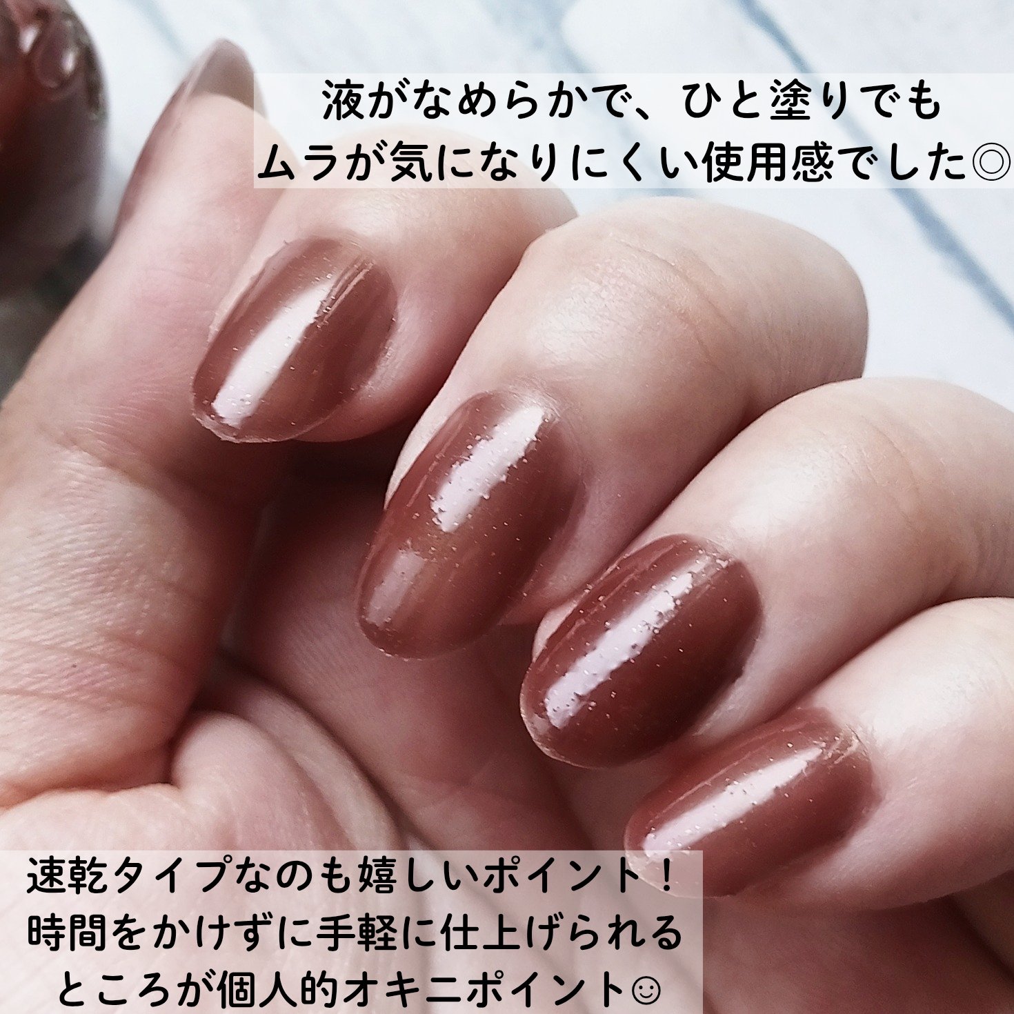 ベースコート、ネイルカラー、うるおいケア、トップコートとして使える4in1なネイル🥰シュガードールオールインワンネイルRの新作限定色28アップルフィグをスウォッチ🍎✨シュガードールオールインワンネイルR28アップルフィグ数量限定アップルフィグ...