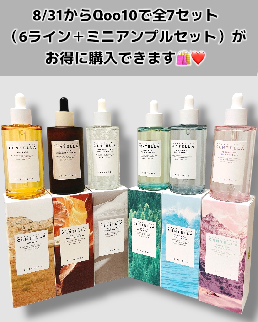 #Qoo10メガ割|@skin1004_japan\肌悩みに合わせて選べる!SKIN1004の人気アンプル6種✨/Qoo10でも大人気のアンプルを一気にご紹介します💁♀️💛センテラアンプルマダガスカル産の高濃度CICA(ツボクサエキス)を配...
