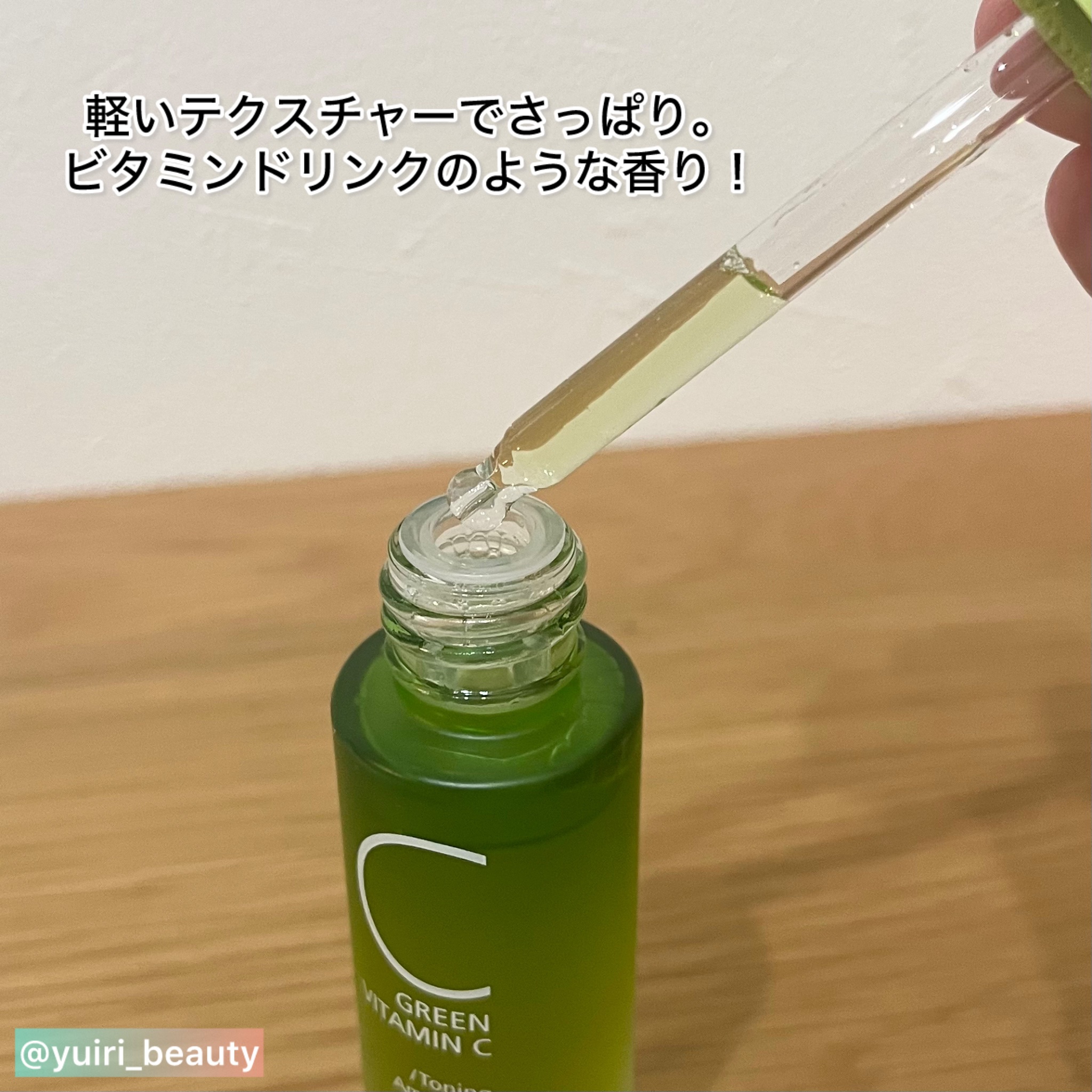 お財布に優しいビタミンアンプルAriulグリーンビタミンCトーニングアンプル古い角質などによる肌のくすみが気になる方に使えるとのことテクスチャはサラサラ日中の使用時は日焼け止め必須です原料臭のような(?)独特な香りがありますが香りに持続性はな...