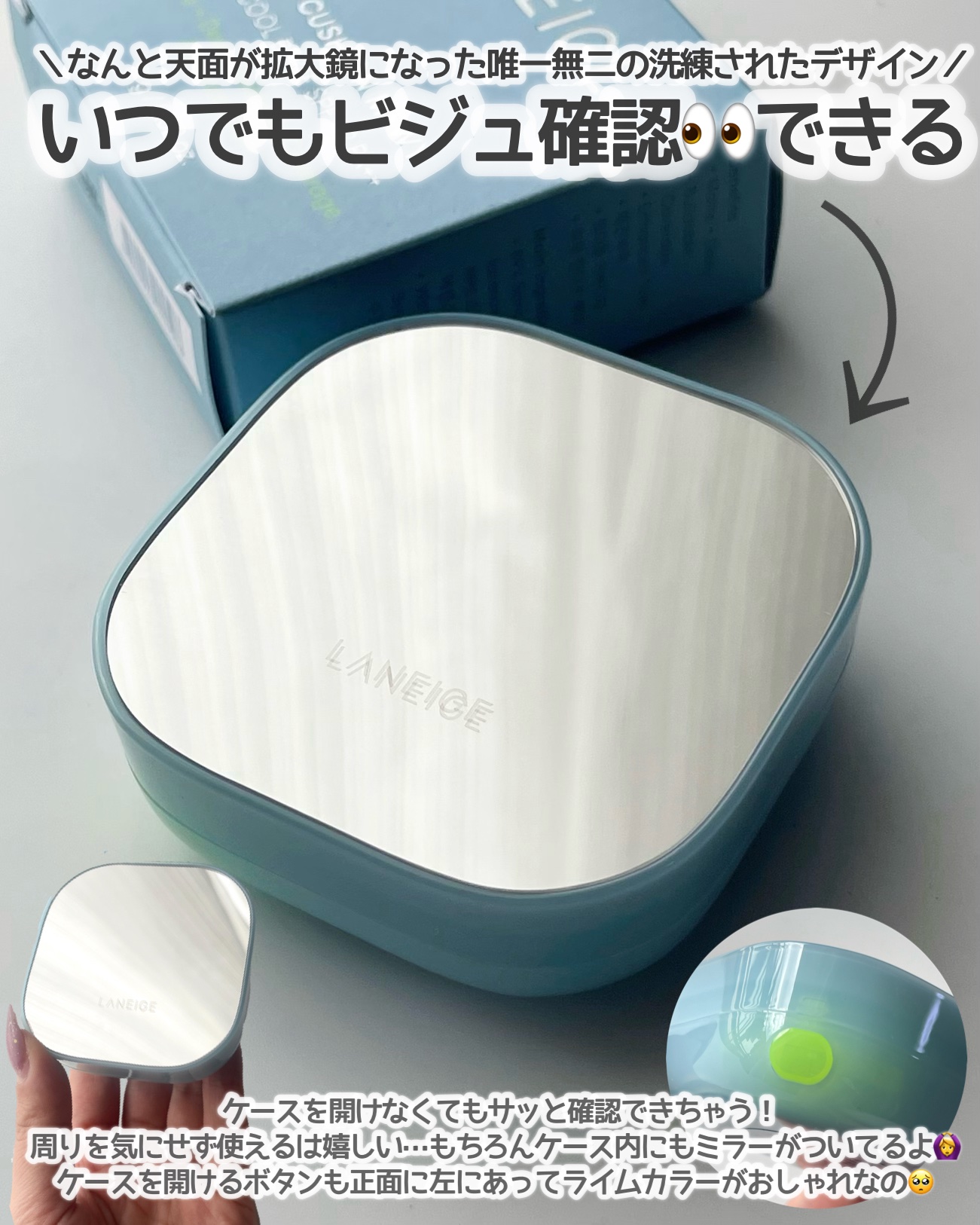 89%スキンケア成分配合*¹の《LANEIGEネオクッションミュイ》は重ね方次第で、理想の肌印象を自在に演出✨🧏🏻♀️長時間*²乾燥しにくい環境をキープしてくれる処方で使い心地良し👌🏻⸝⋆天面が拡大鏡になっているから、サッと身だしなみチェッ...