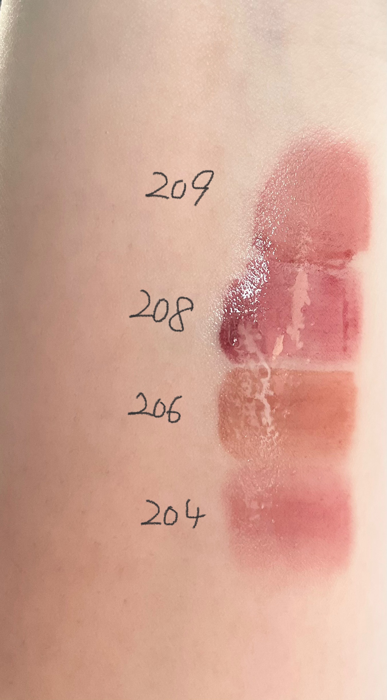 【使った商品】Coralhazeデュードロップティント【色味】写真2枚目上から204:青みピンク ブルベ206:オレンジ、ブラウン、ピンク イエベ208:青みレッド ブルベ209:ブラウン、レッド イエベ3枚目の写真はティッシュオフ後です【色...
