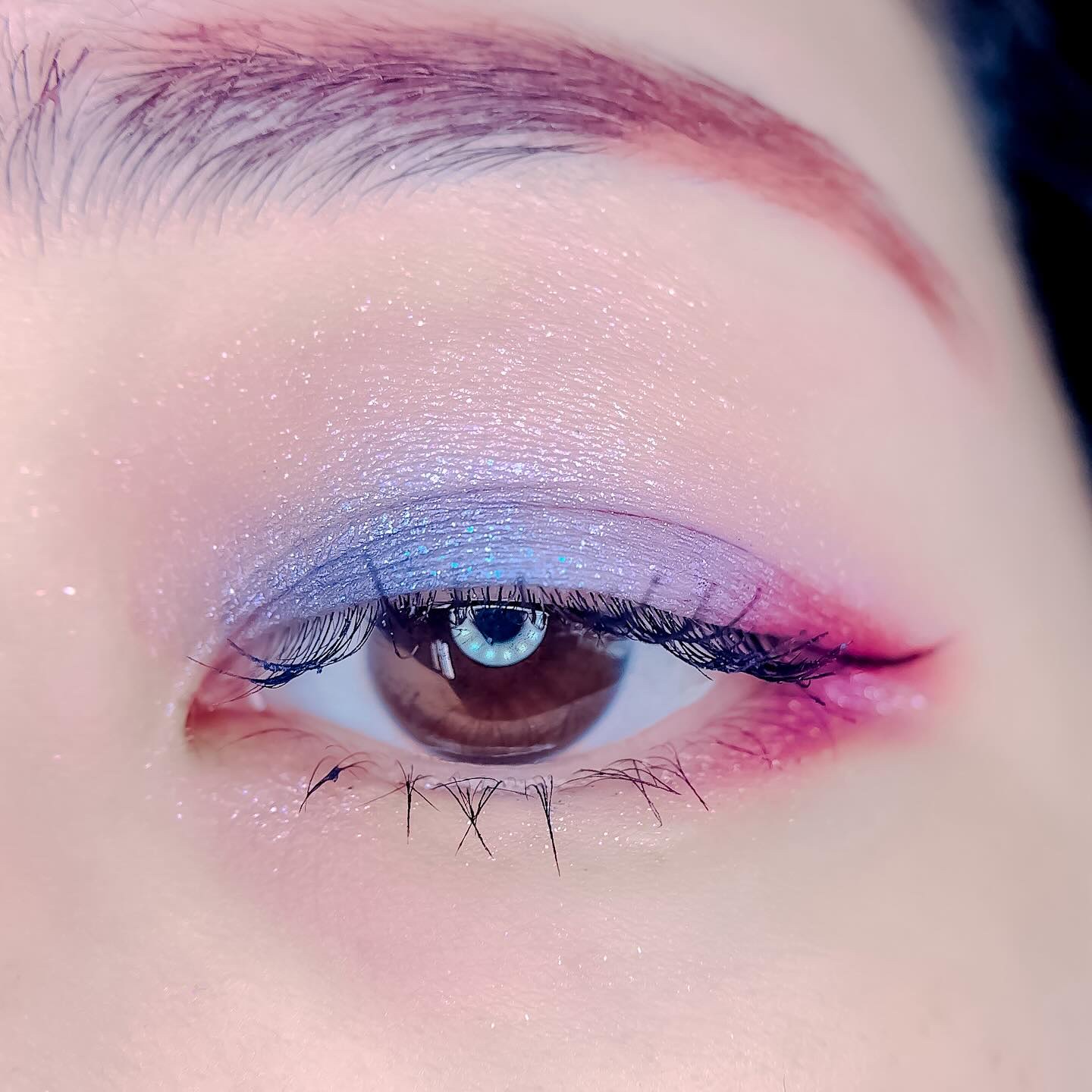 ピンクにグレージュも良いですね👌💗 今日は可愛らしい感じにしてみました💕 上下瞼黒目〜目頭側にラメを塗ってキラキラさせております🤩 目尻はマットのピンクを濃いめに重ねて💗 グレージュのアイライナーと相性◎