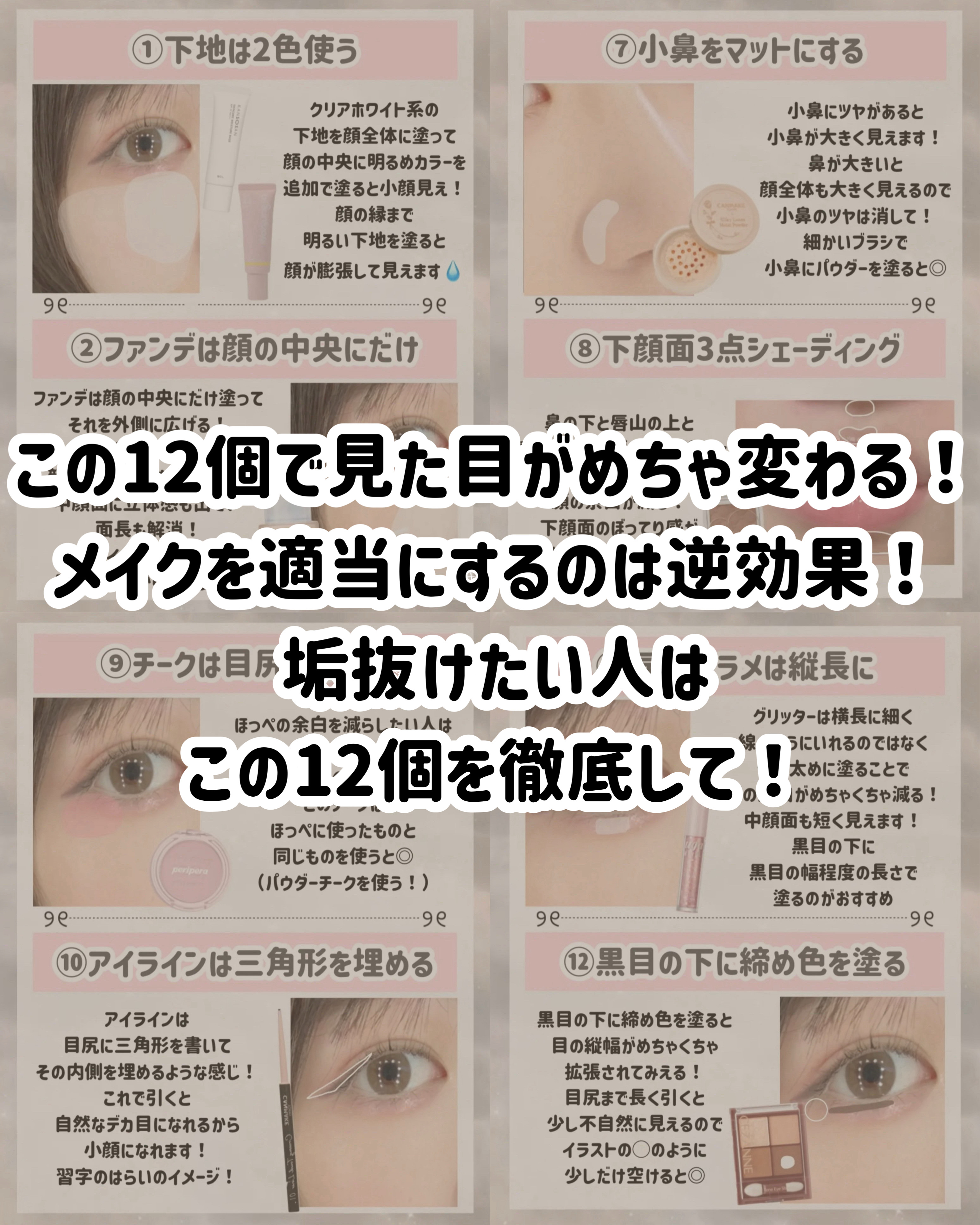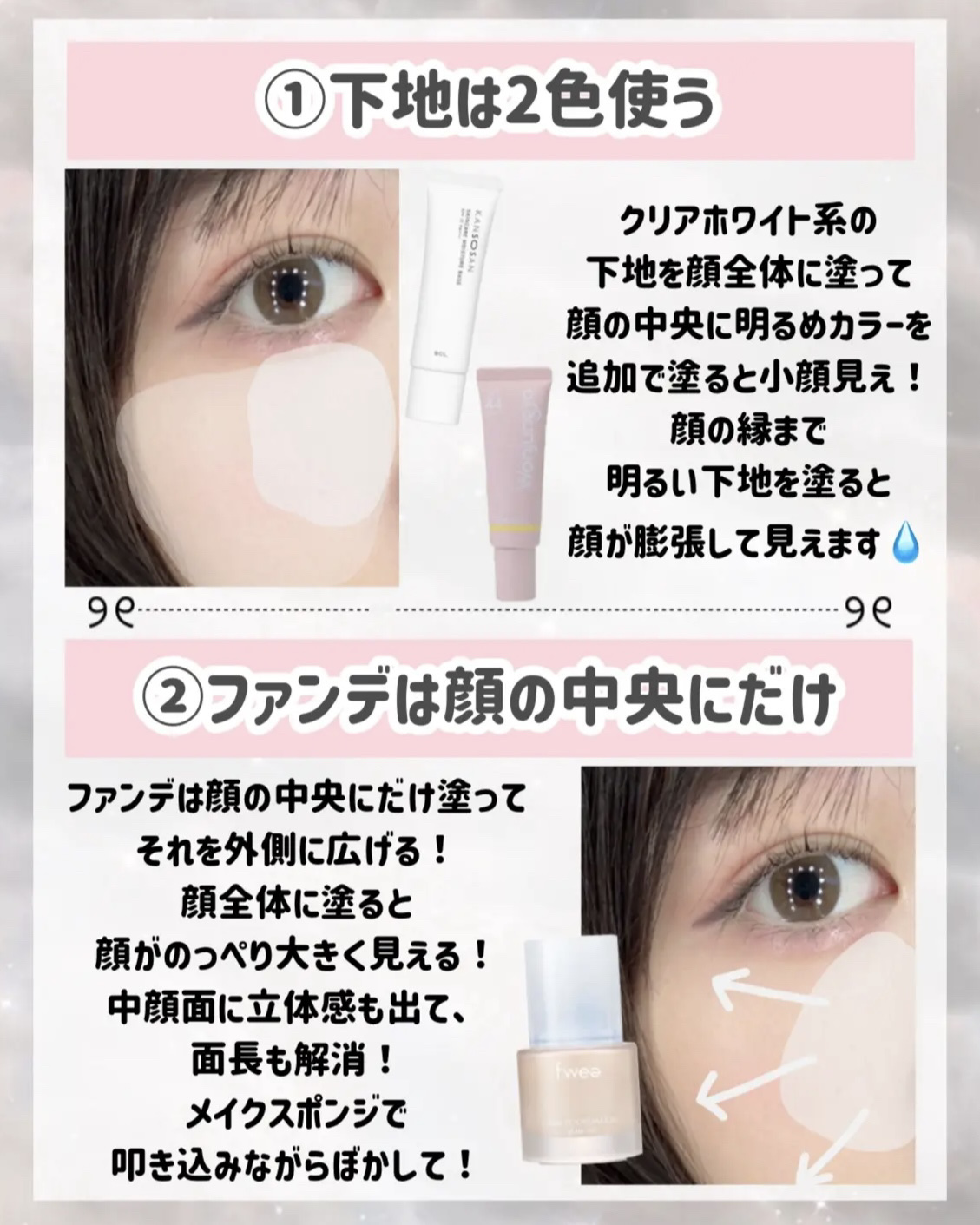 面長を解消したい人向け! 中顔面短縮メイクテク8選です🙌🏻📝 中顔面とは❔ 目の下(涙袋は含まない)から唇の真ん中(口角)までの長さのことです! 「6.5cm」以上だと長めになります📏