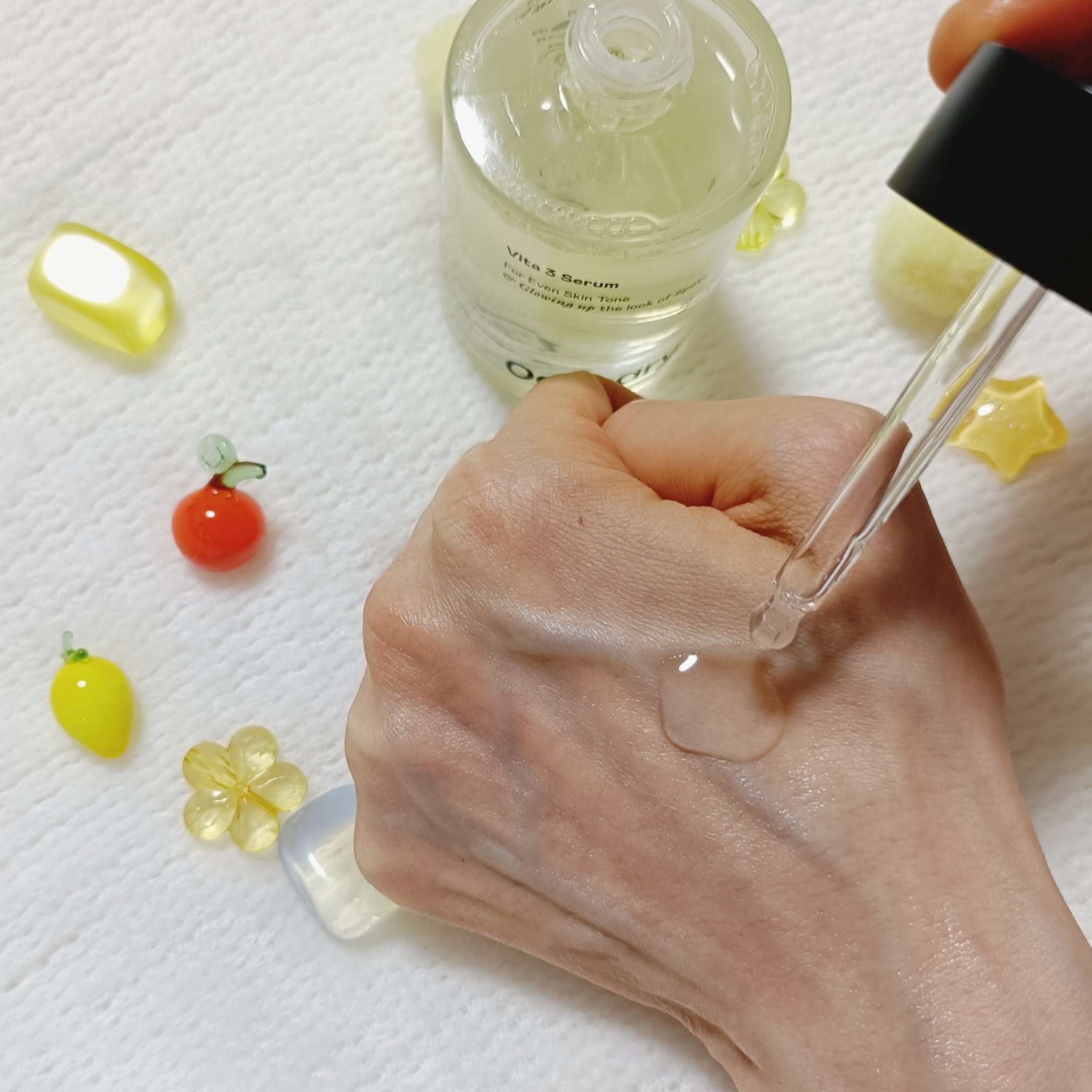 【オーズナリーホワイトガンセラム試してみました】このセラムには・アスコルビルグルコシド(ビタミンC)・エチルアスコルビン酸(ビタミンC誘導体)・ナイアシン(ビタミンB3)が配合されていて、肌のトーンアップや保湿、鎮静にもいいそうです。とろみの...