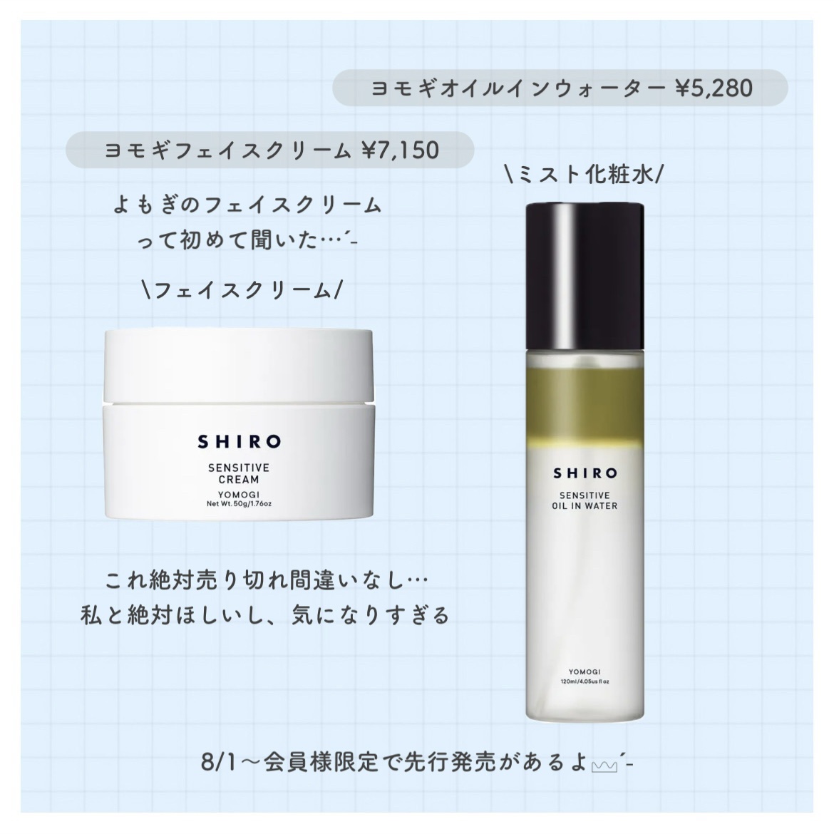 SHIRO新作情報⟡.·*.··············································⟡.·*.発売日08/05森の素材から初の定番スキンケアヨモギシリーズが登場♥ヨモギフェイスクリーム7.150円リッチなテ...