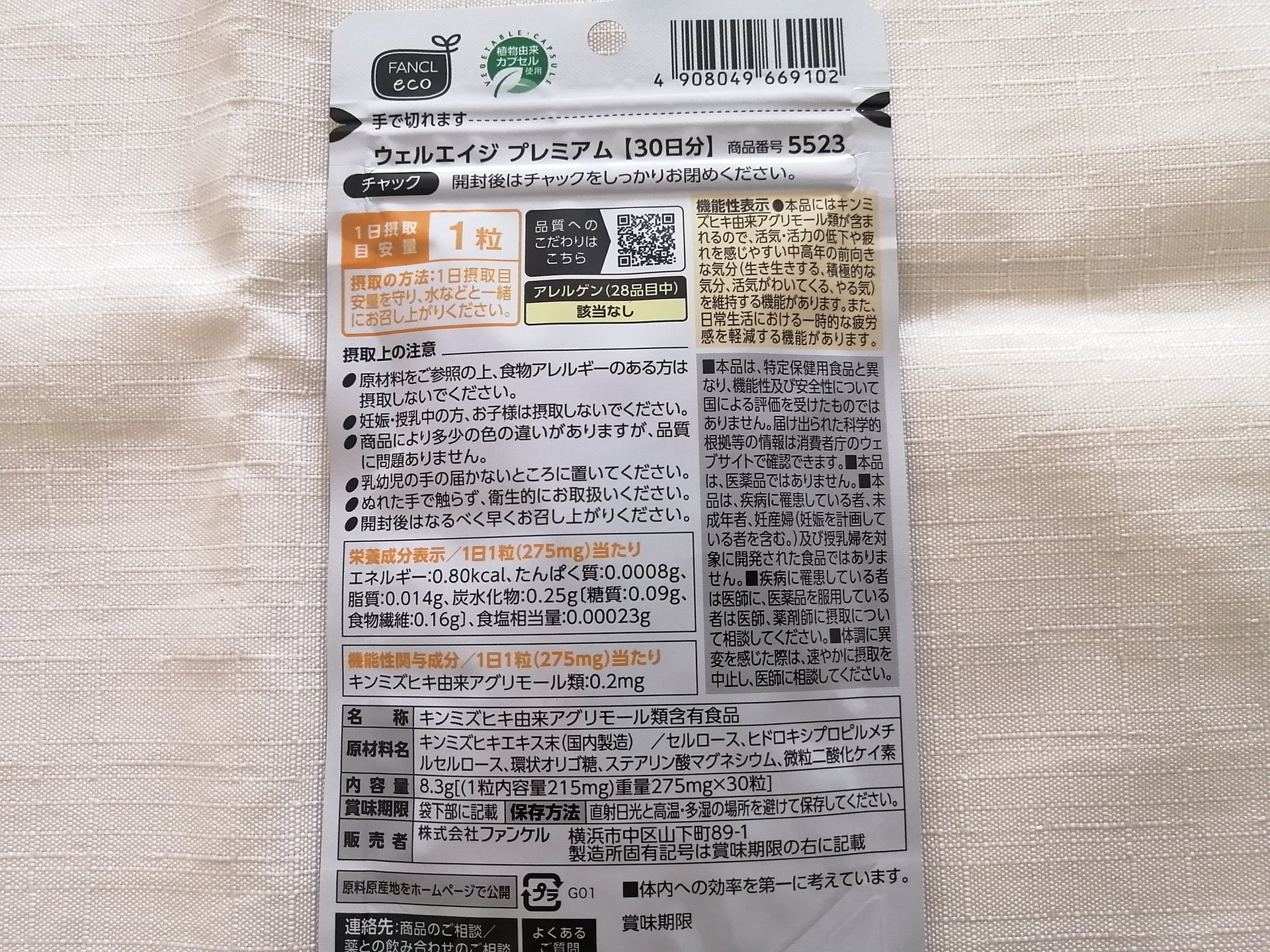 商品詳細情報ファンケル ウェルエイジ プレミアム【機能性表示食品】