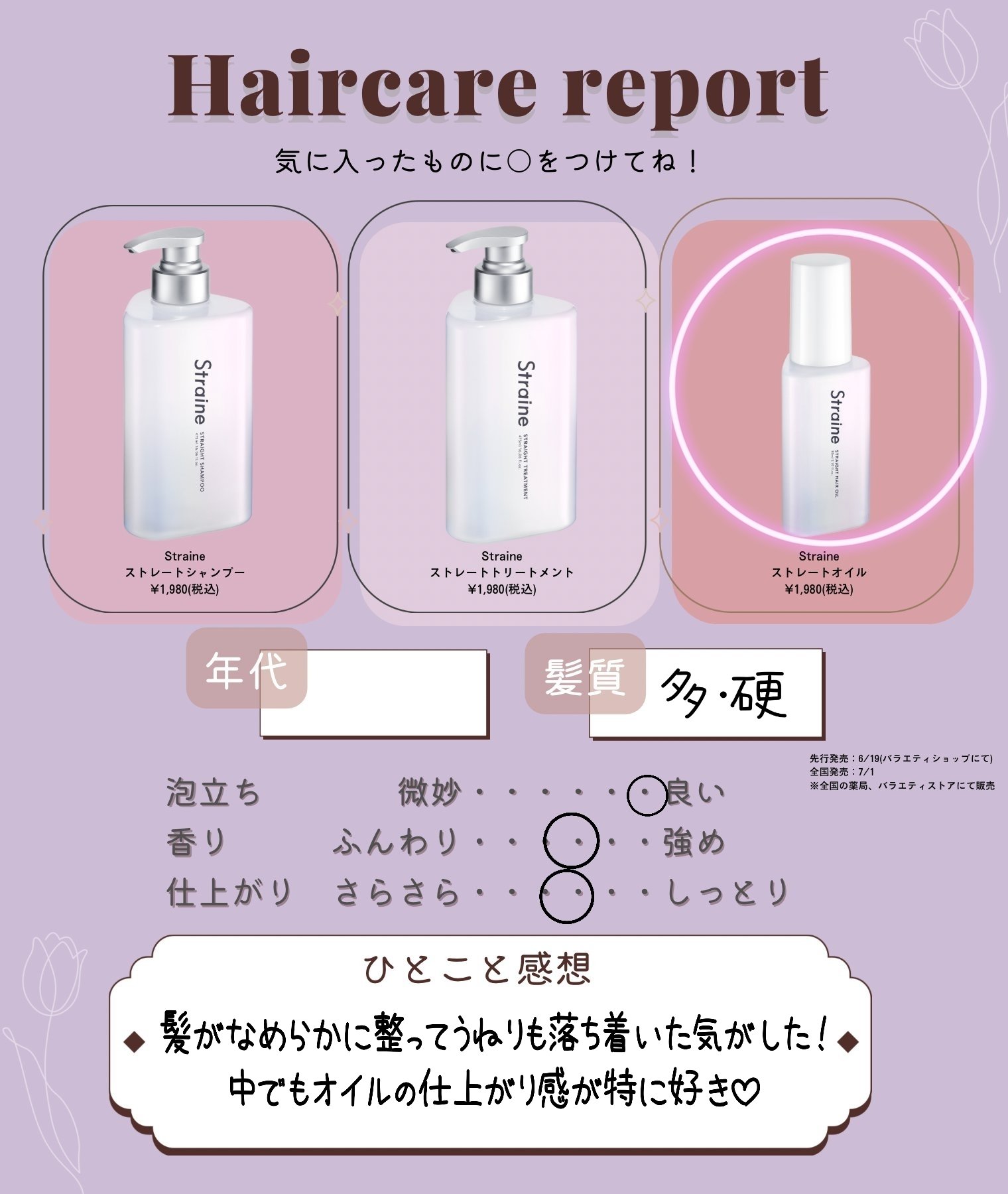 Straine ストレートシャンプー/ストレートトリートメント ホワイトブロッサムの香り | 1,980円 |