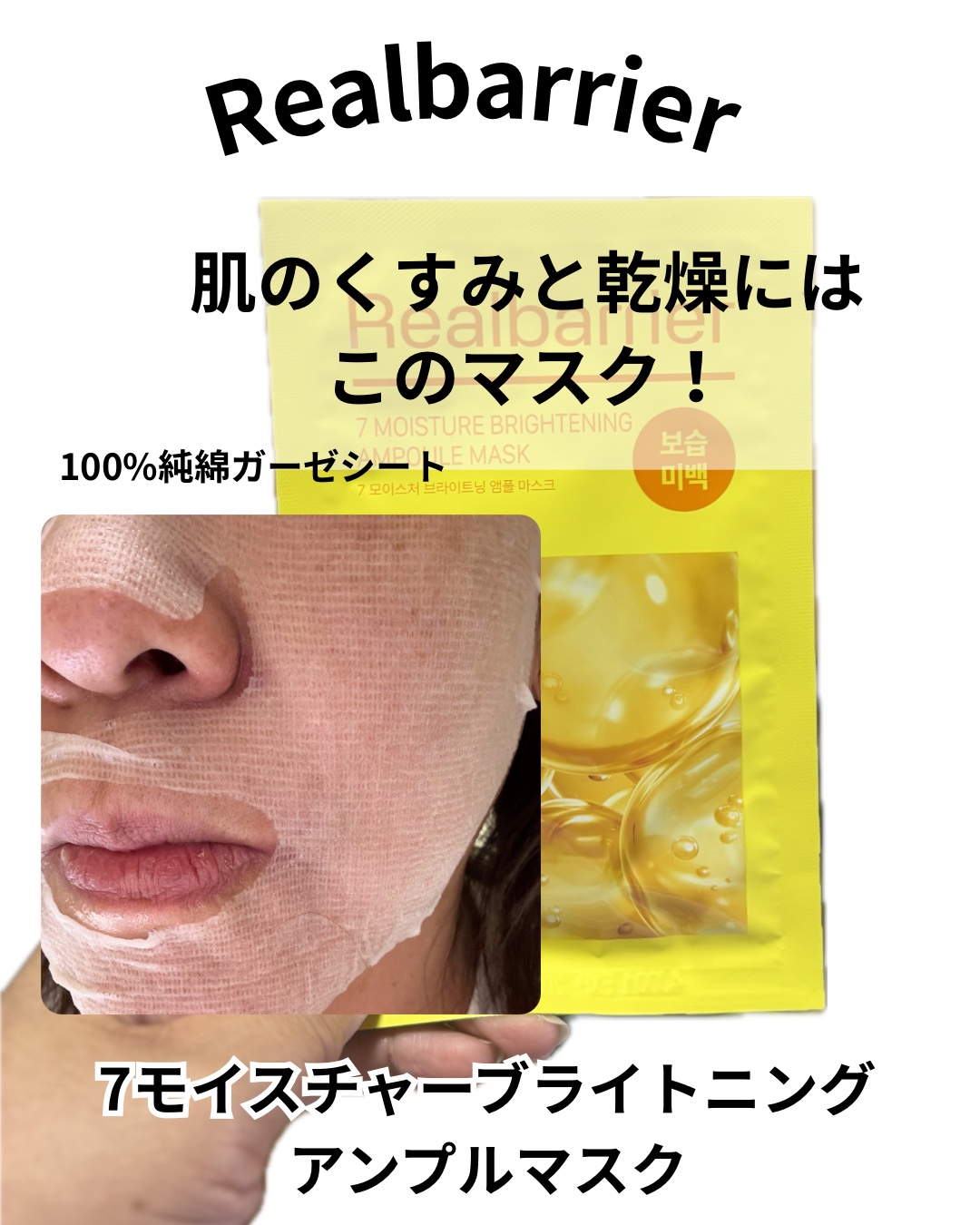 Realbarrier(@realbarrier_jp_official) 🌼7モイスチャーブライトニングアンプルマスク🌼ナイアシンアミド&グルタチオンのブライトニングシナジーが透明感のあるお肌に🌟また7種の保湿成分(パンテノール、ベタイン、...